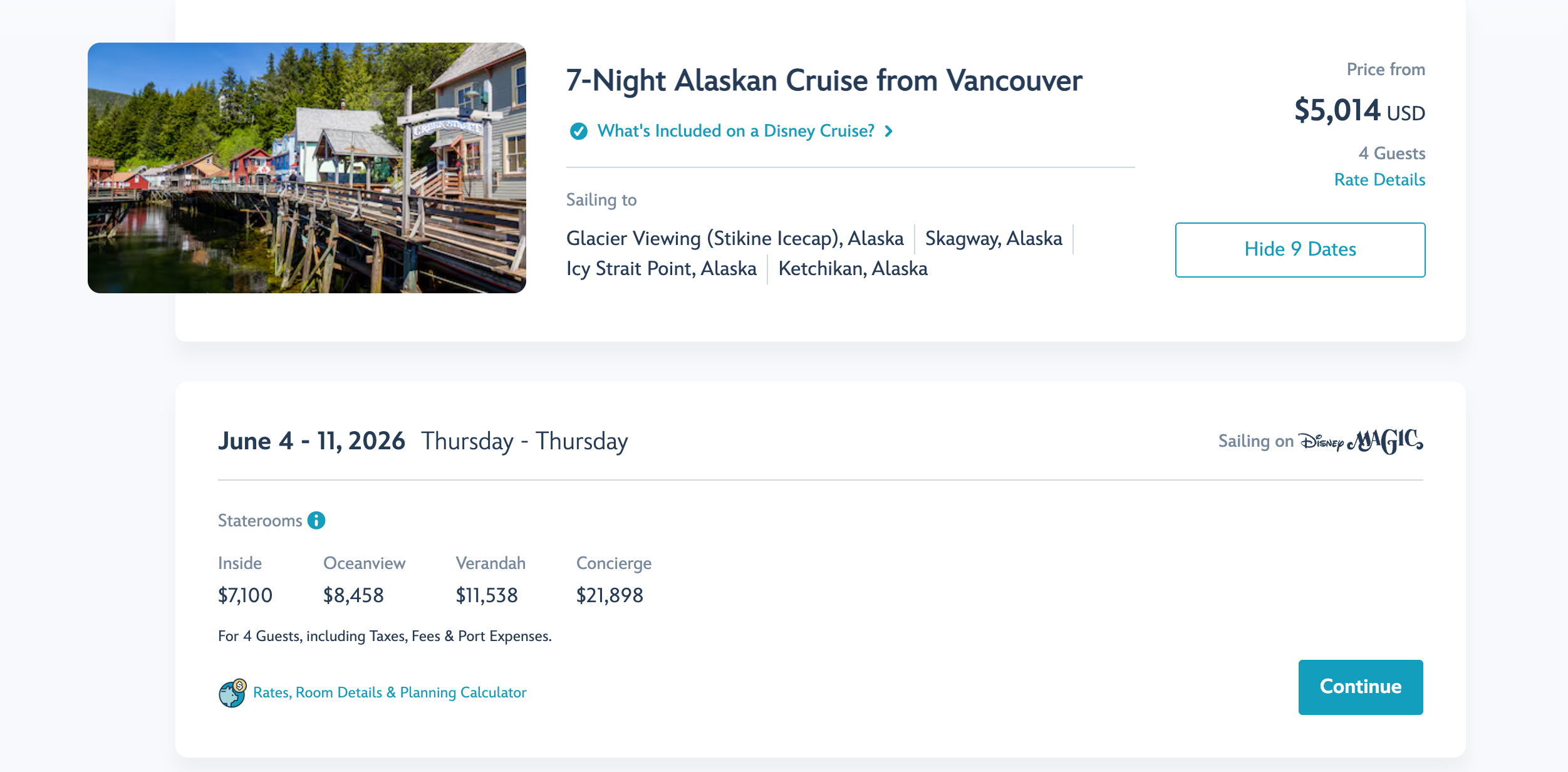 On the flip side, prices go up to tens of thousands of dollars per sailing for concierge level for the larger suites or on longer sailings, such as for a weeklong sailing on the new Disney Treasure or the popular Disney sailings to Alaska.
