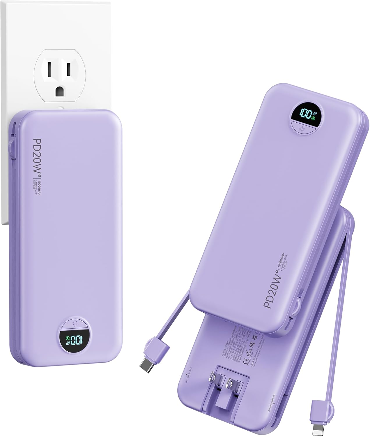 【Built in Cables and AC Wall Plug】This portable charger built-in cables and wall plug make it iPhone, Android, and USB C devices. No worry about carrying various cables or chargers. It’s your best travel accessories for choosing.