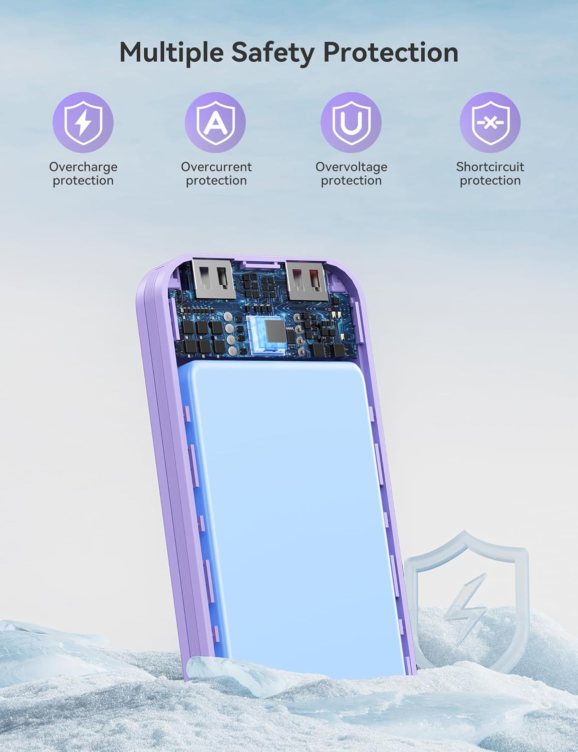 【Quick Speed Charging Power Bank】The Type C port of the portable power bank supports up to 20W fast charging output, which can quickly charge your iPhone 17 /16 device and save charging time for you. It can charge up to 5 devices simultaneously.