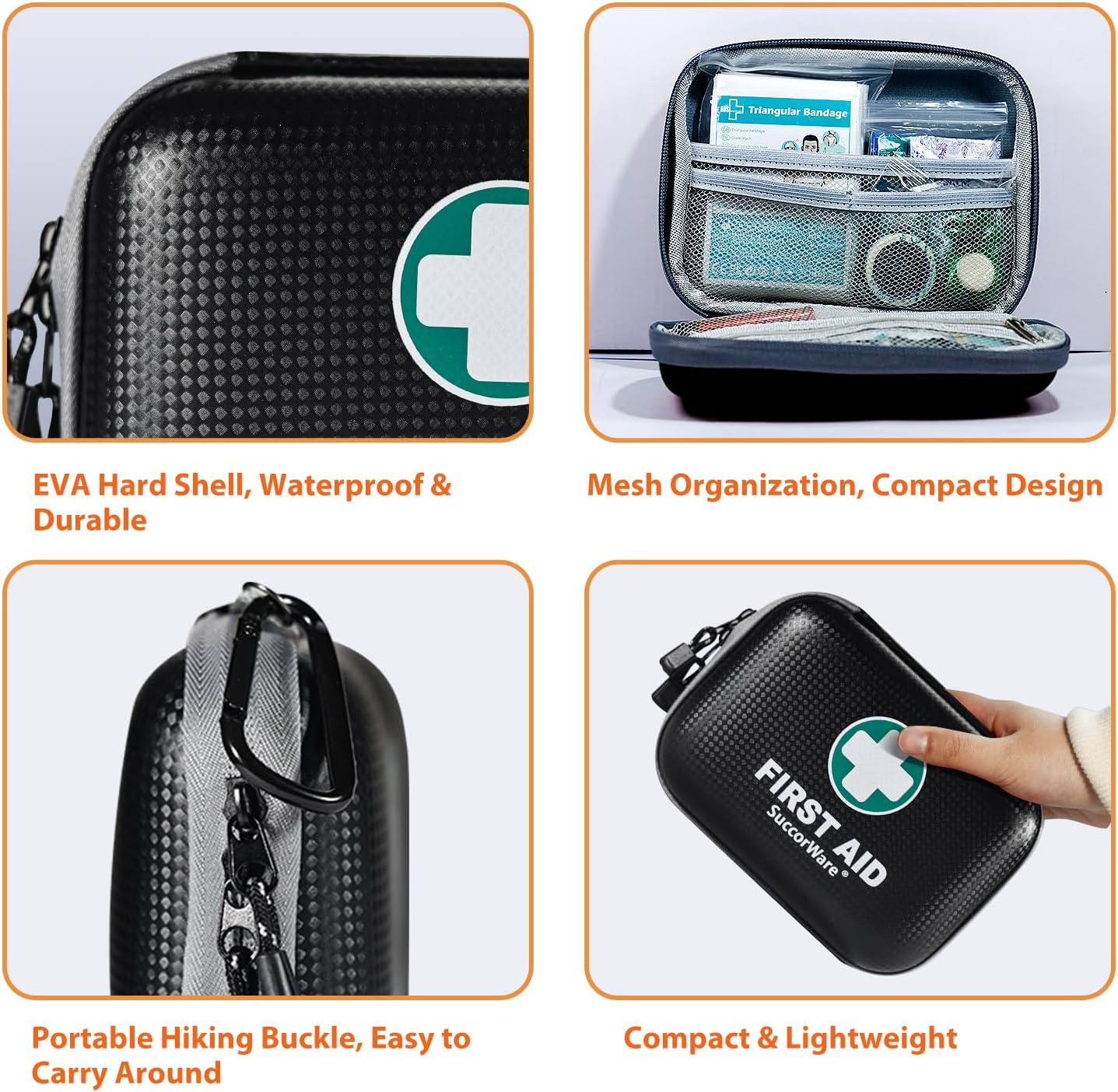 150 PROFESSIONAL EMERGENCY ESSENTIALS – Our mini first aid kit contains 150 carefully selected medical supplies for your basic care needs, perfect for backpacking, camping, hiking and outdoor adventures.