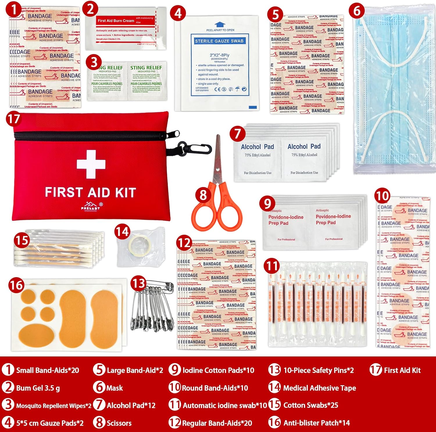 【COMPREHENSIVE CONTENTS】Contains essential medical supplies including bandages, gauze pads, and basic first aid items for emergency care
