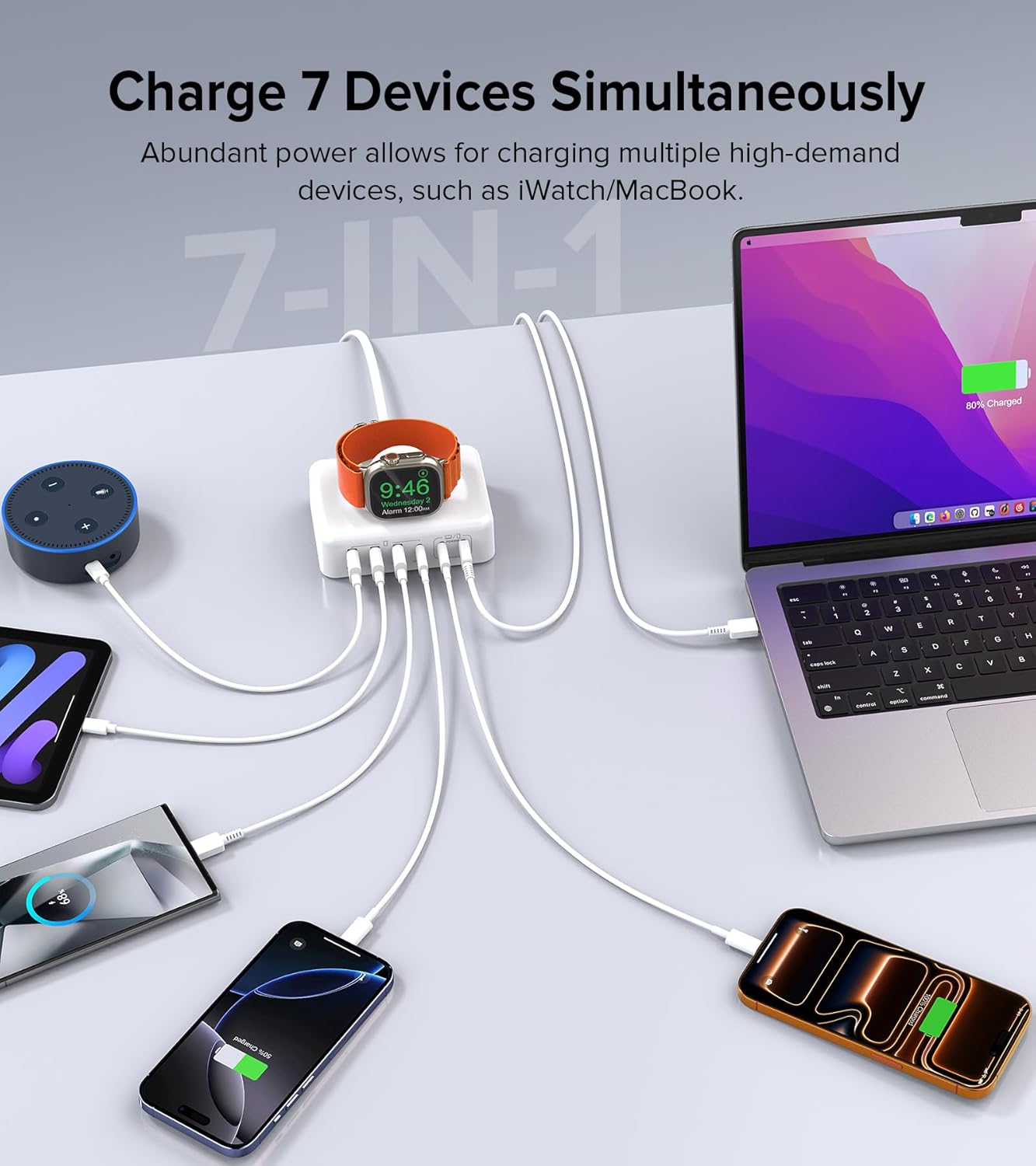 【Safety & Reliability】Built with premium Navitas Gallium Nitride (GaN) chipsets operate more efficiently and generate less heat.The multiport USB C desktop charging station boasts over-current, over-voltage, short-circuit, and overheating protection, maximizing the charging safety. USB C wall charger passed UL CE FCC RoHS safety certification ensures 100% complete protection for you and your devices