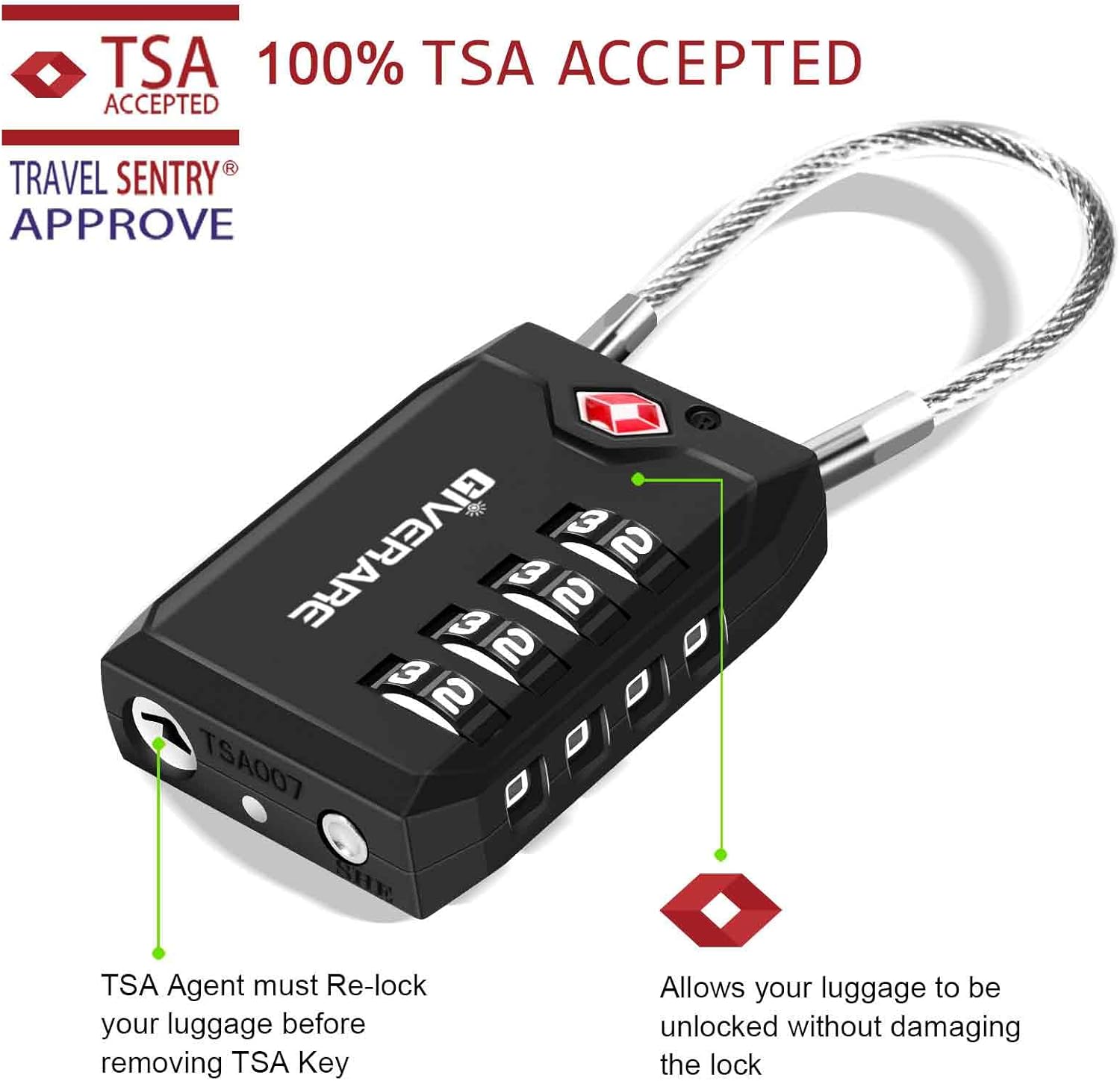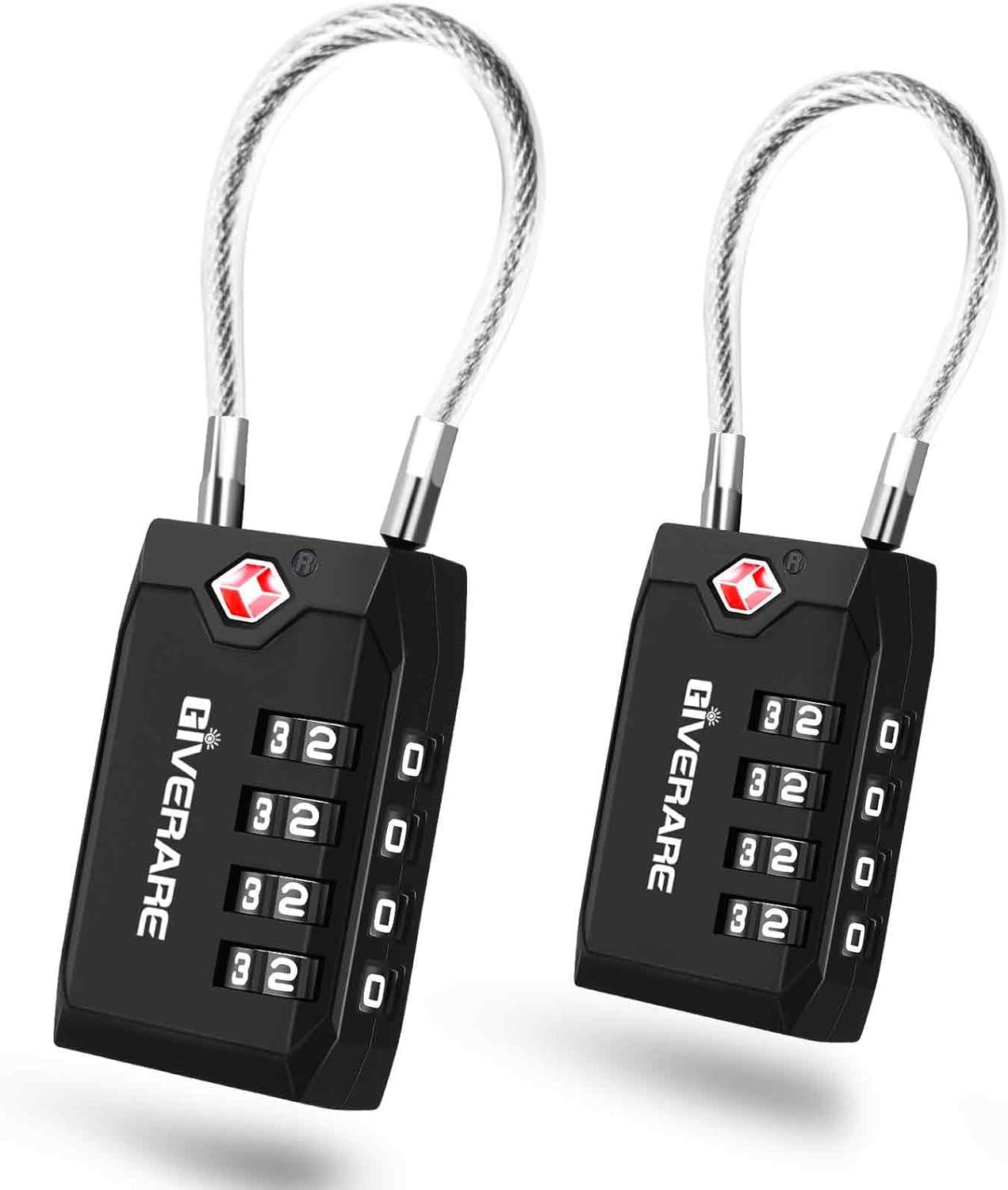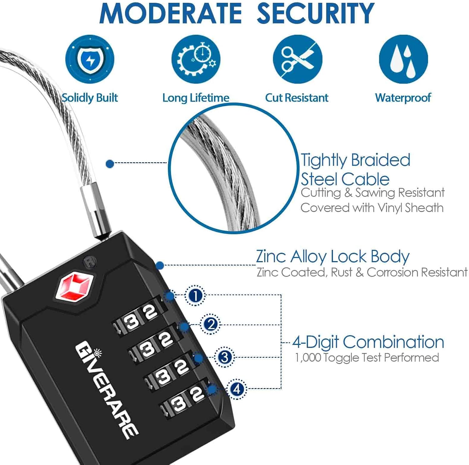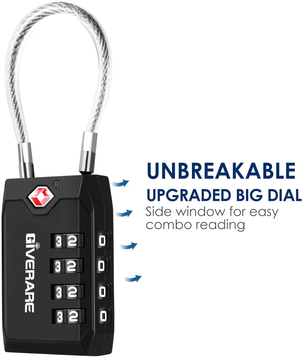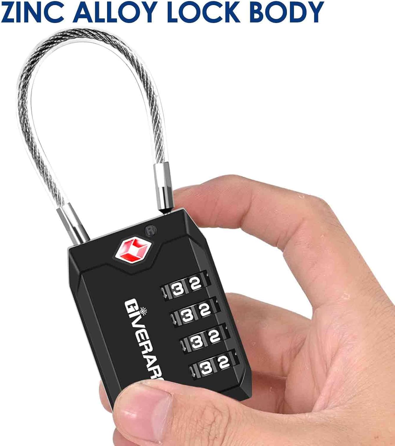 VERSATILE LOCK FOR ALL SITUATIONS: GIVERARE TSA cable padlock is perfect for indoor & outdoor use locking suitcase, hard case, gun case, briefcase, locker, purse, backpack, laptop bag and anything lockable, it locks your precious safely without any keys