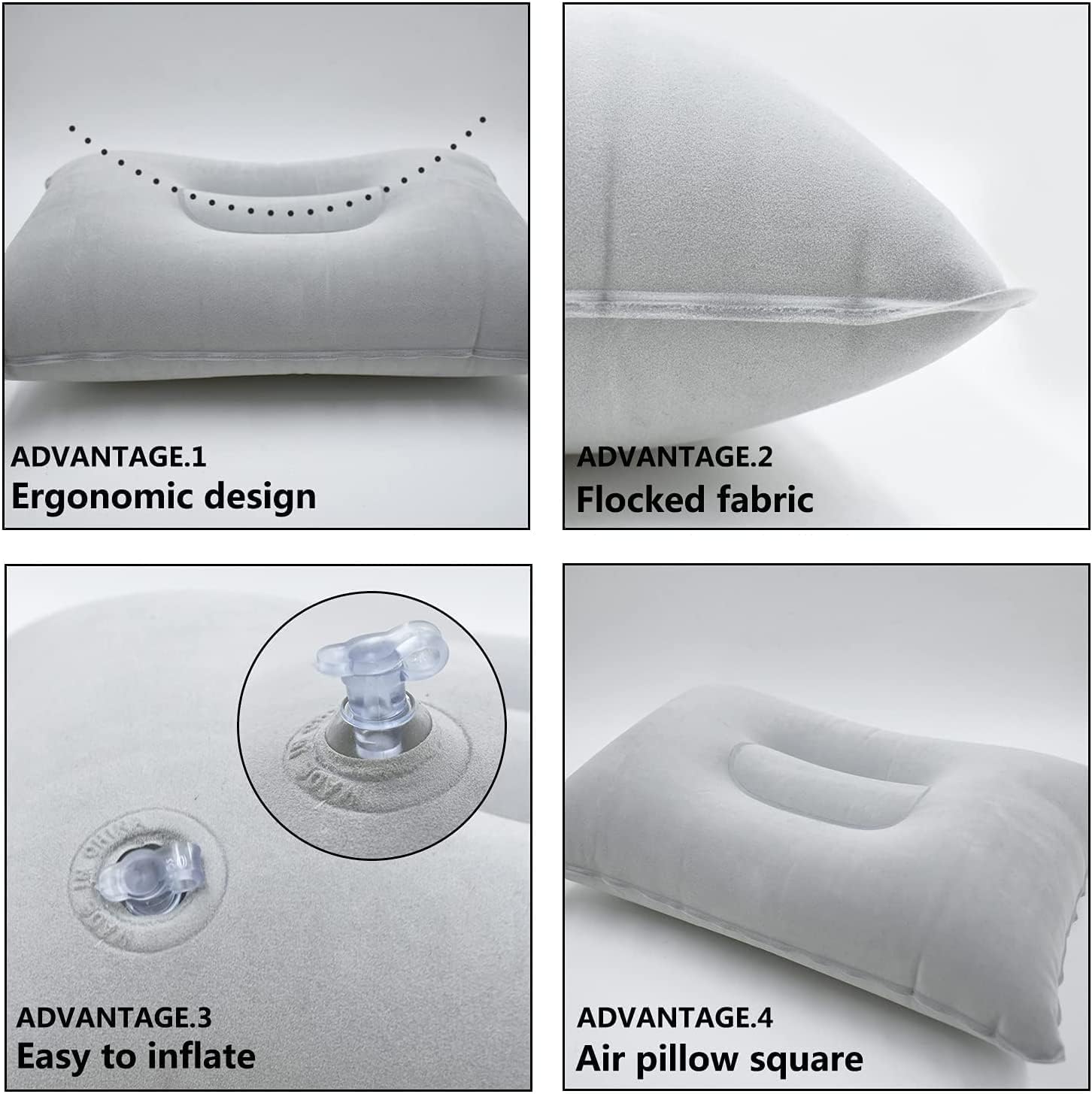 Small Squared Flocked Fabric Air Pillow for Hiking,Camping,Traveling,Napping,Neck & Lumbar Support Gray