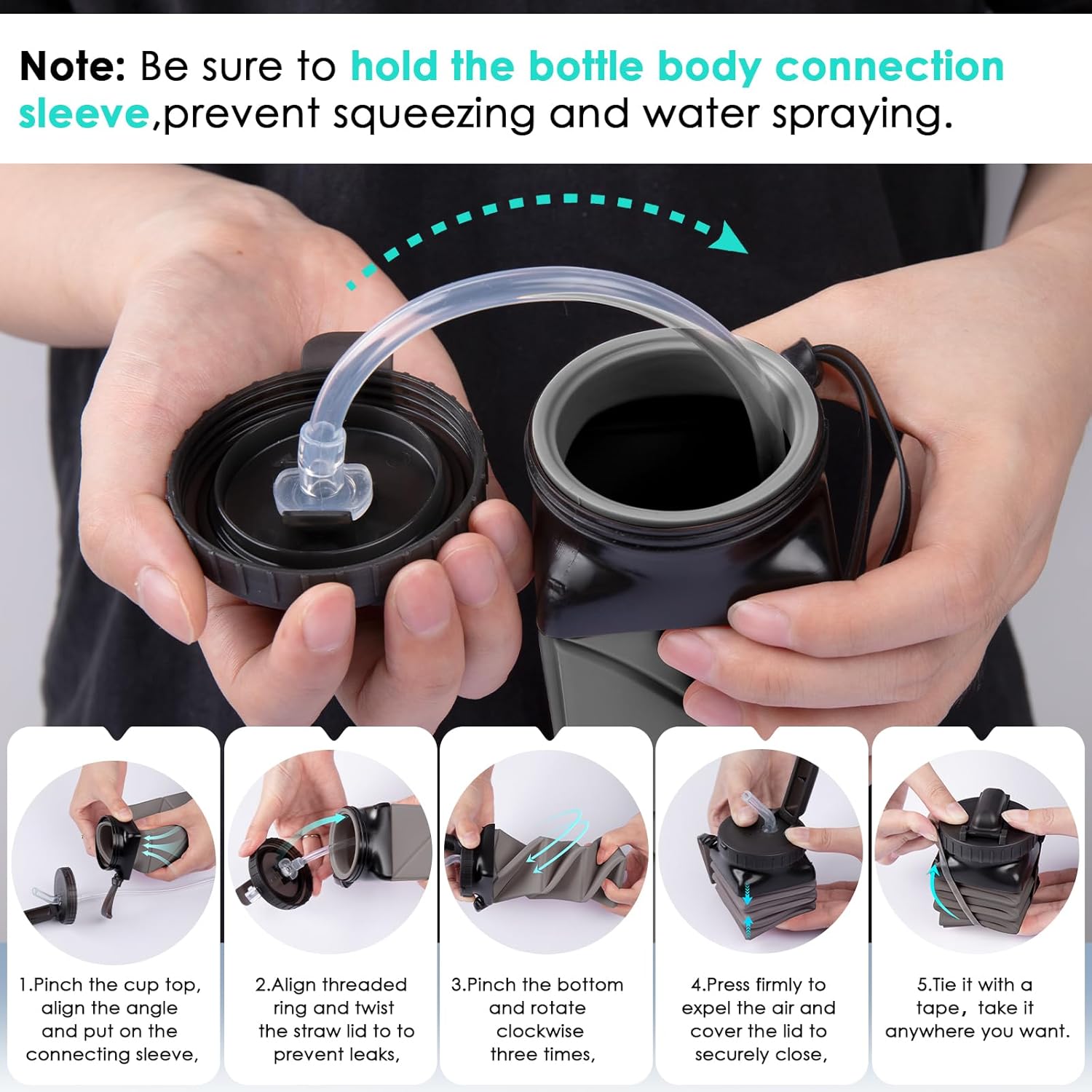 Portable & Practical: Features multi-functional straps for easy attachment to your backpack and a wrist straps for hands-free carrying.Mess-Free Design: The easy-to-drink straw ensures a clean, hassle-free experience, perfect for outdoor adventures.Compact & Versatile: Collapses when not in use, saving space while remaining durable and ready for action.