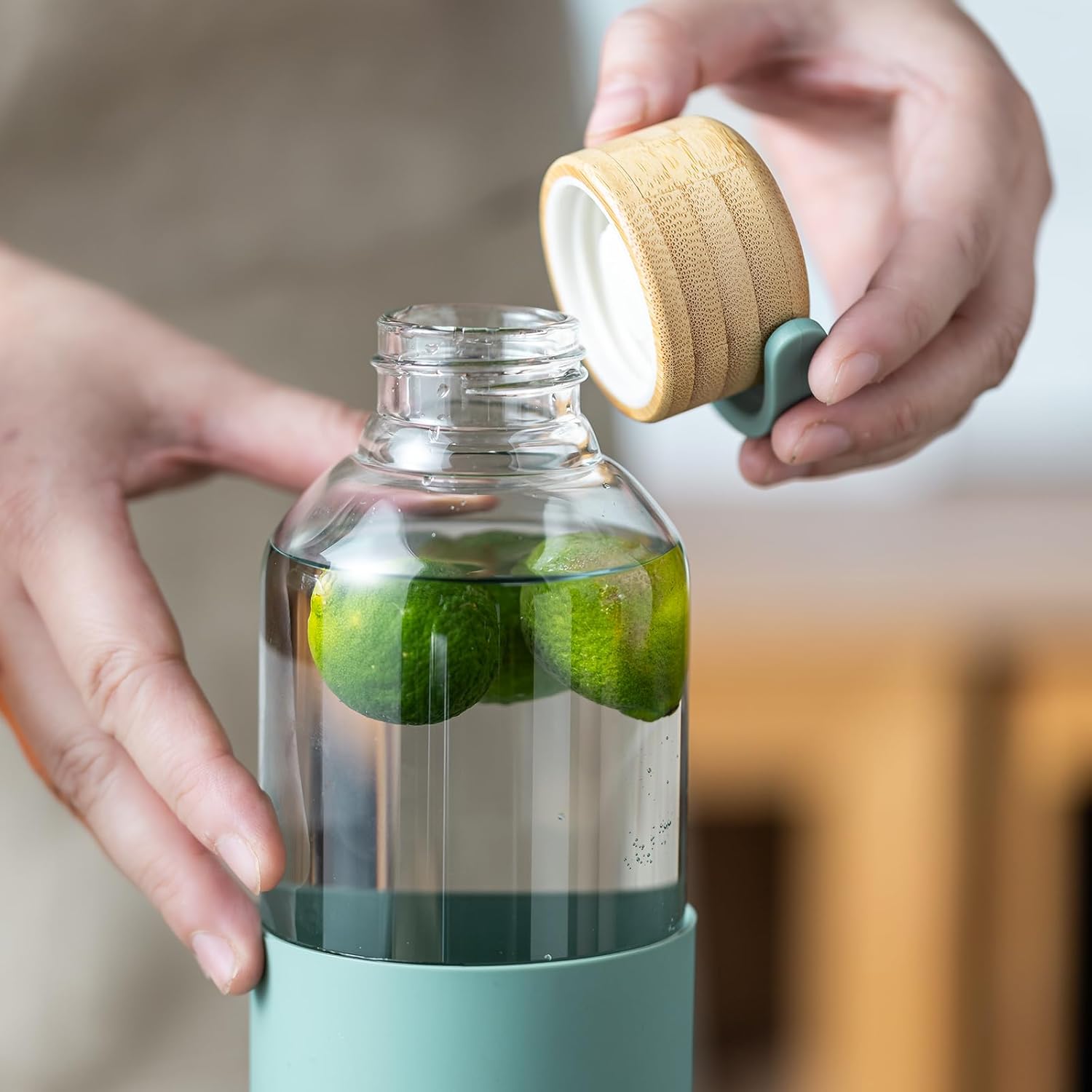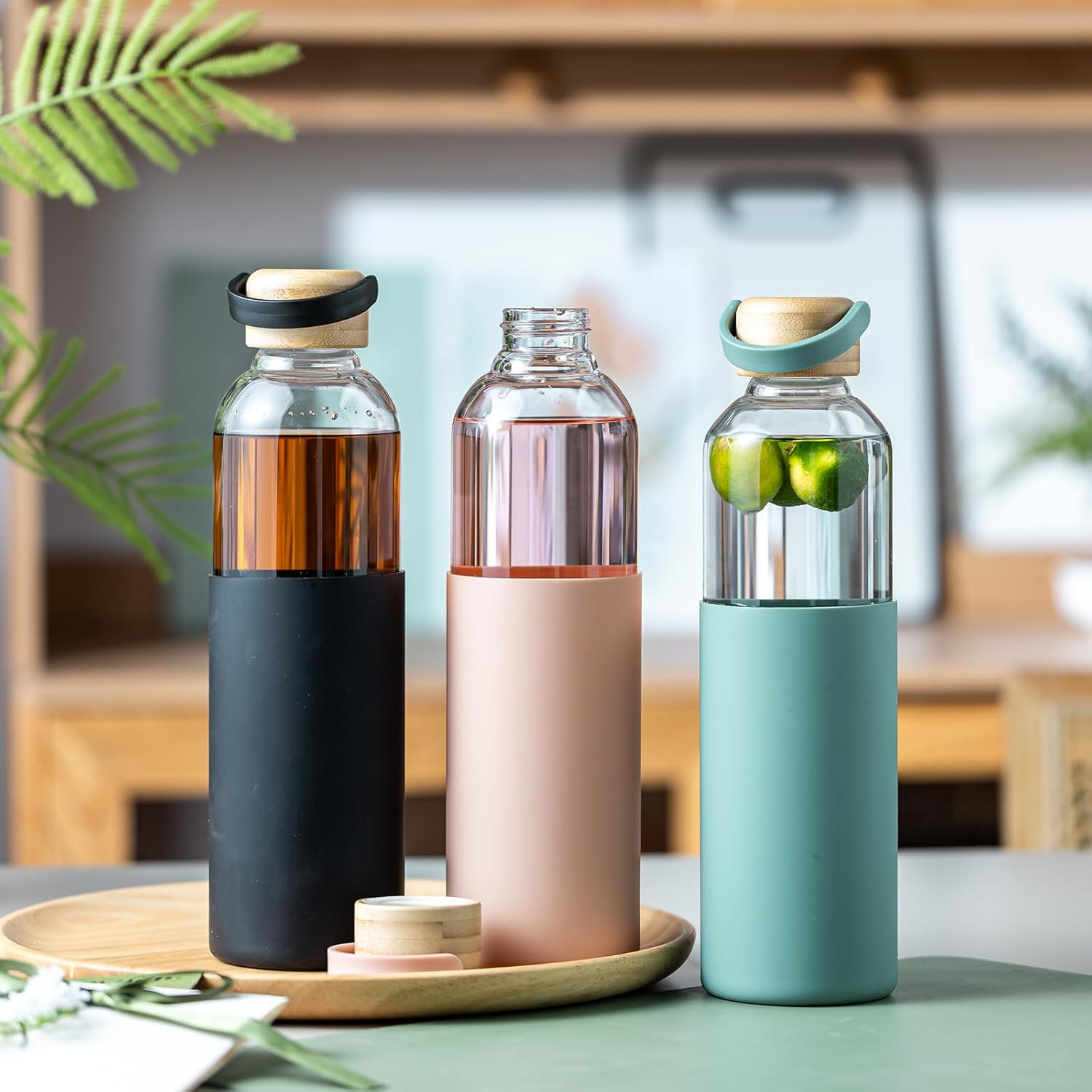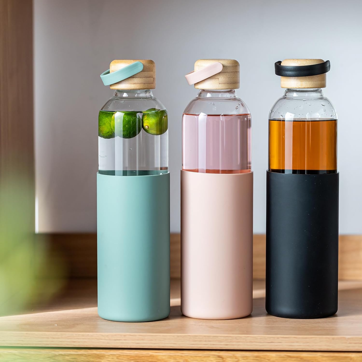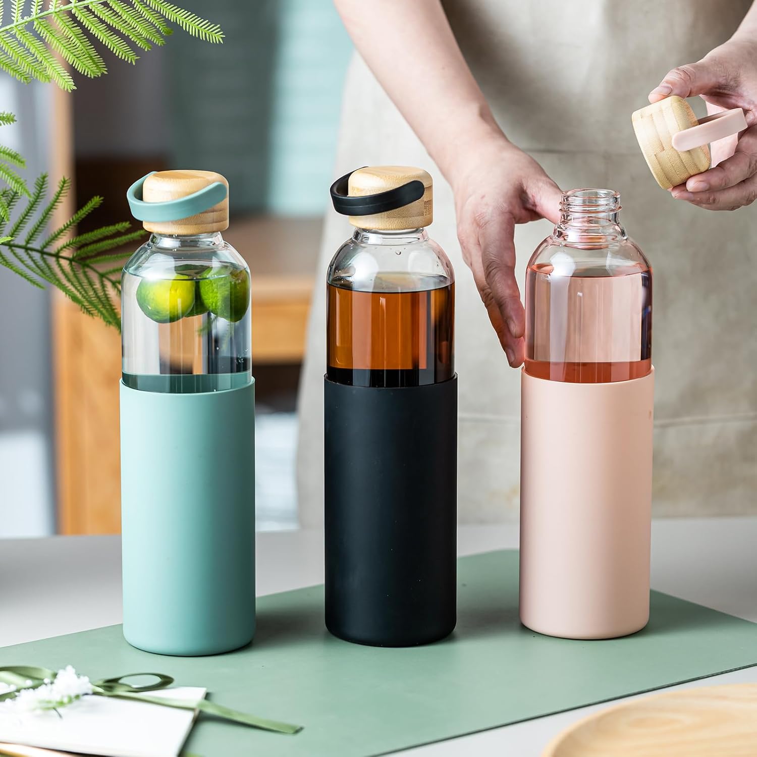 【Silicone Sleeve】: This glass water bottle with silicone sleeve that not only provides a comfortable, non – slip grip but also protects the water bottle glass from minor accidental bumps and scratches. It also prevents burns when holding hot drinks.