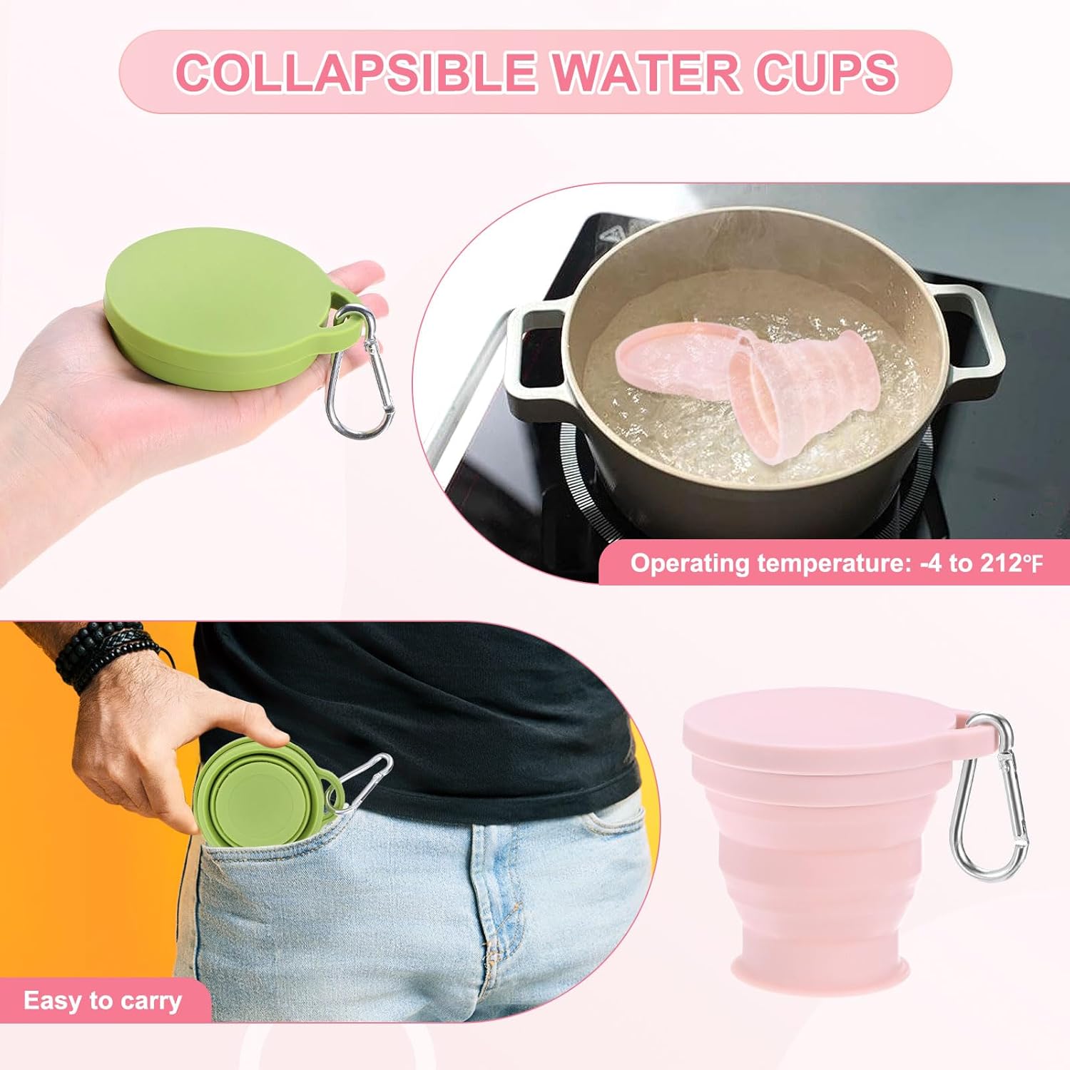 √ Package Includes: 4 pcs Portable Foldable Cups