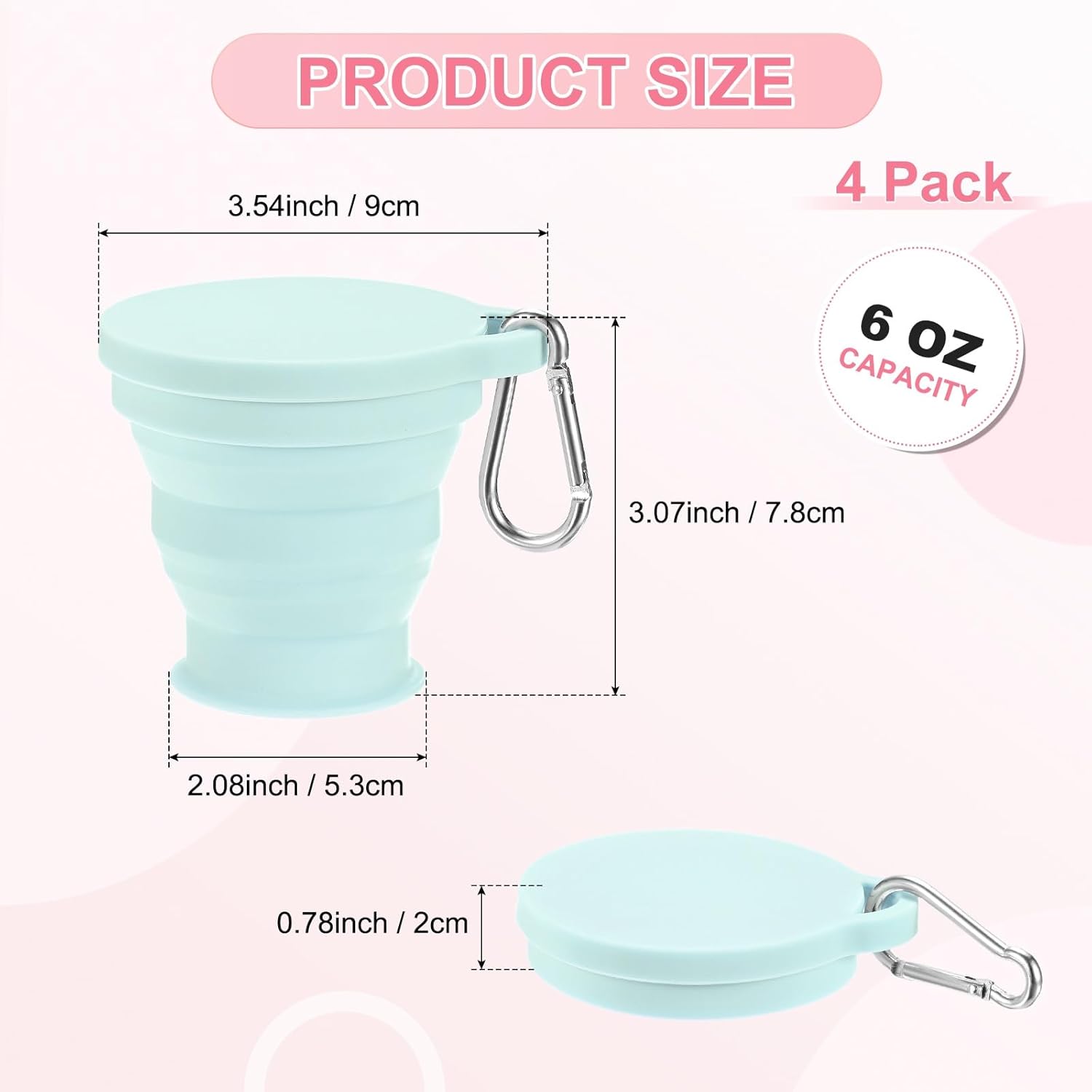 [Size & Package] – The foldable cup has a capacity of 2.4 oz/70 ml, a top diameter of 1.97 inches/5 cm, a bottom diameter of 1.89 inches/4.8 cm, an unfolded height of 2.4 inches/6.1 cm, and a folded height of 0.55 inches/1.4 cm. 1 pcs portable collapsible cup is included in the package.