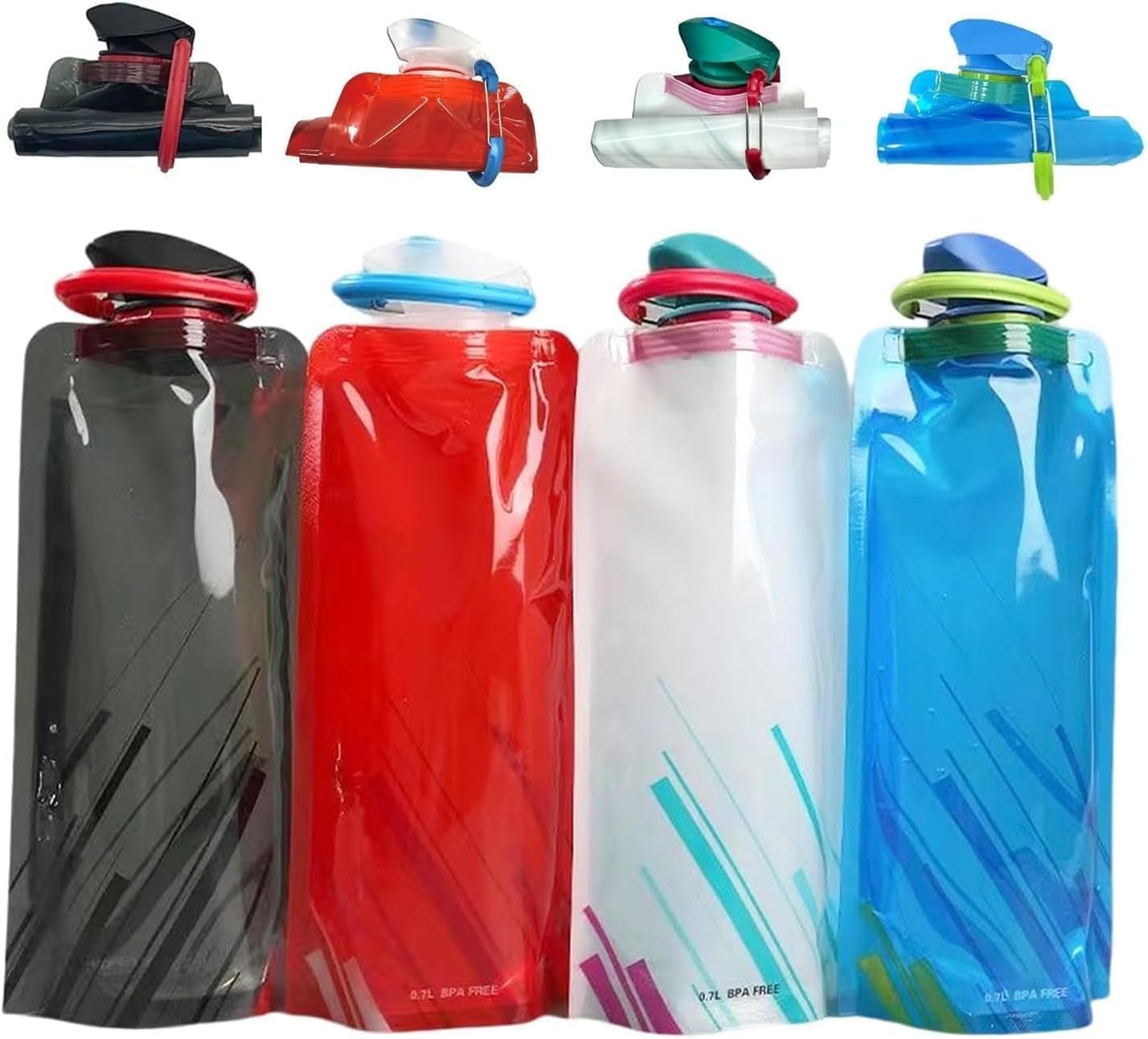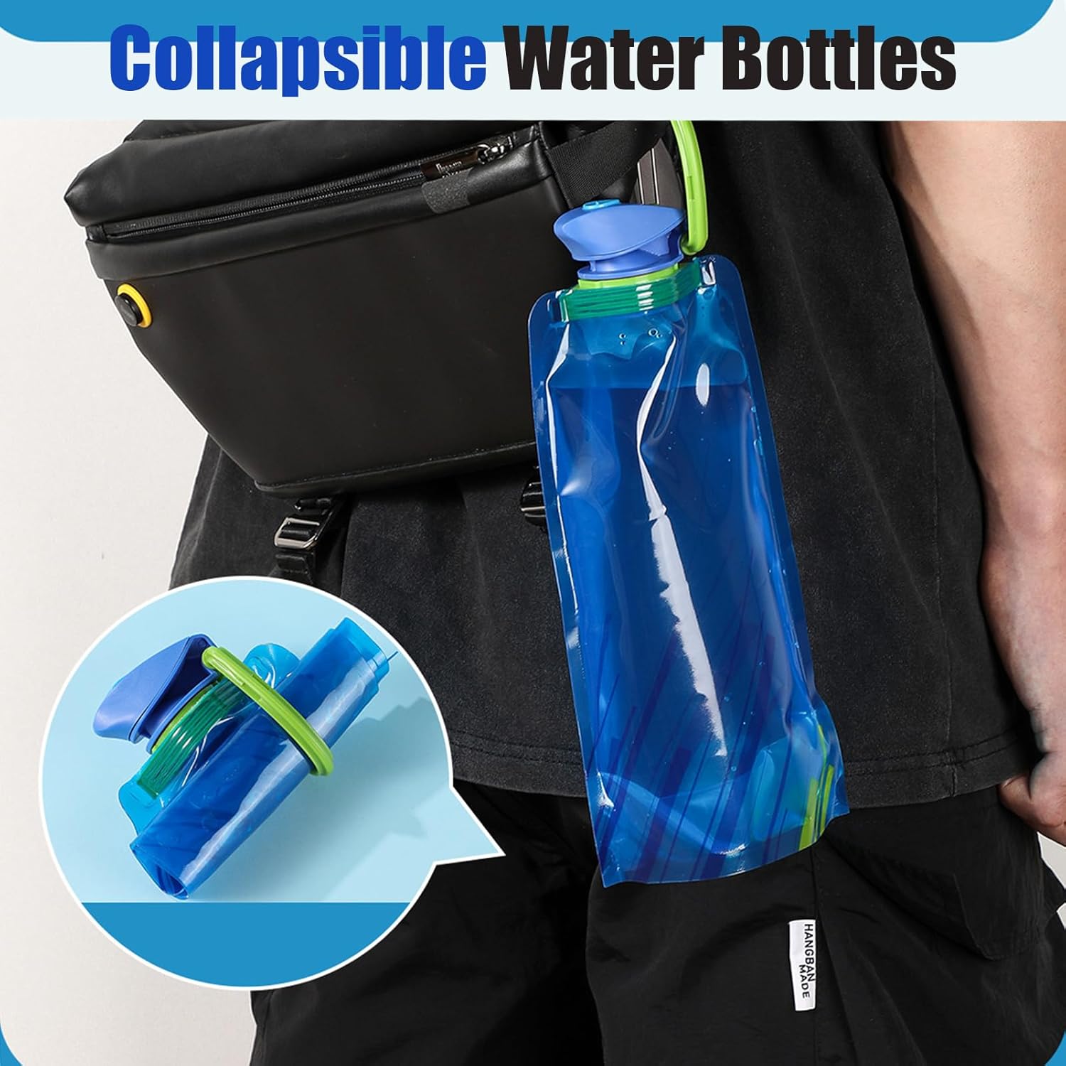 【Portable & Collapsible Design】 The portable water bottle is space-saving and portable, as it can be flattened or rolled up when empty, hung or hung when full.