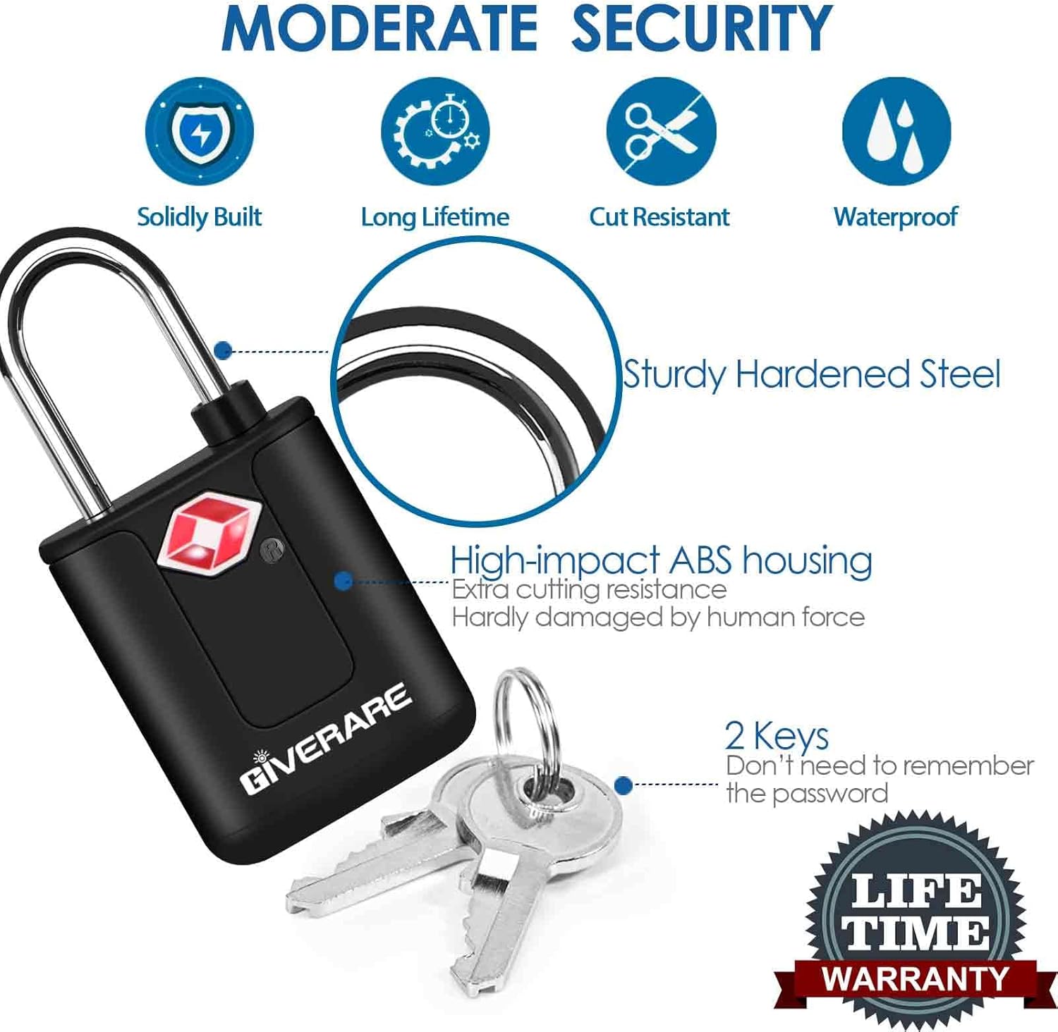Allows TSA inspectors to inspect and re-lock baggage without damaging the lock. Help you enjoy your trip & business internationally through 750+ airports.Made of Hardened steel +Copper+High-impact ABS, safe & durable & rustproof, longer service life.The steel shackle affords up to 220 lbs with extra cutting resistance and hardly damaged by human force.Updated patented internal mechanisms, 8-10 times stronger than original ones, won’t rust or freeze up even after years of use.