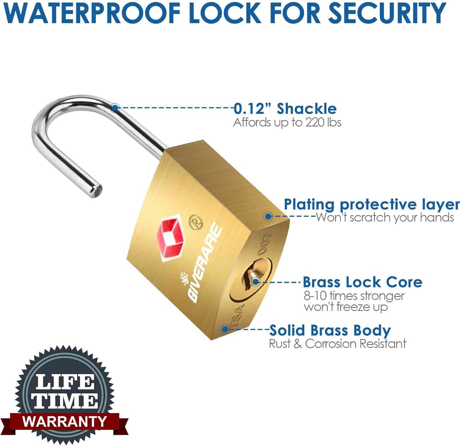 TSA Approved Premium copper lock body 0.12” hardened steel shackle Extra cutting resistance Suitable for different situations Patented internal mechanisms Waterproof 4 classic padlocks + 8 keys