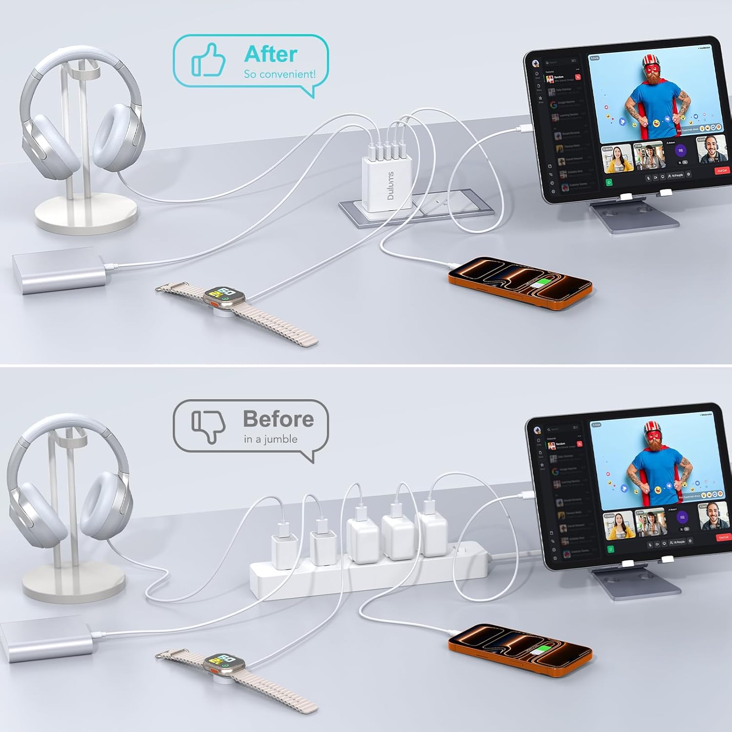 Safe and Reliable USB Plug:The 50 W USB fast charger station has a built-in smart chip with GaN technology that automatically matches the current required by your device, preventing it from short-circuiting, over-current, over-voltage, overheating and over-charging. Meanwhile, the USB charger block is made of ABS + PC fire-resistant material, ensuring that your digital devices are always safely charged 24 hours a day