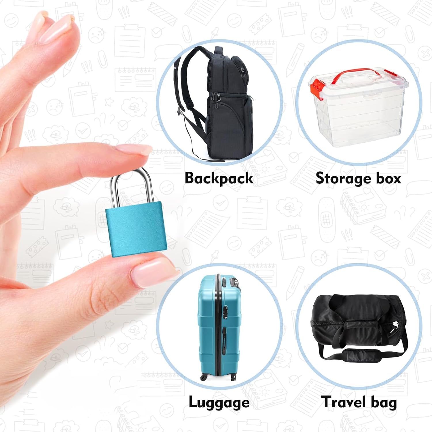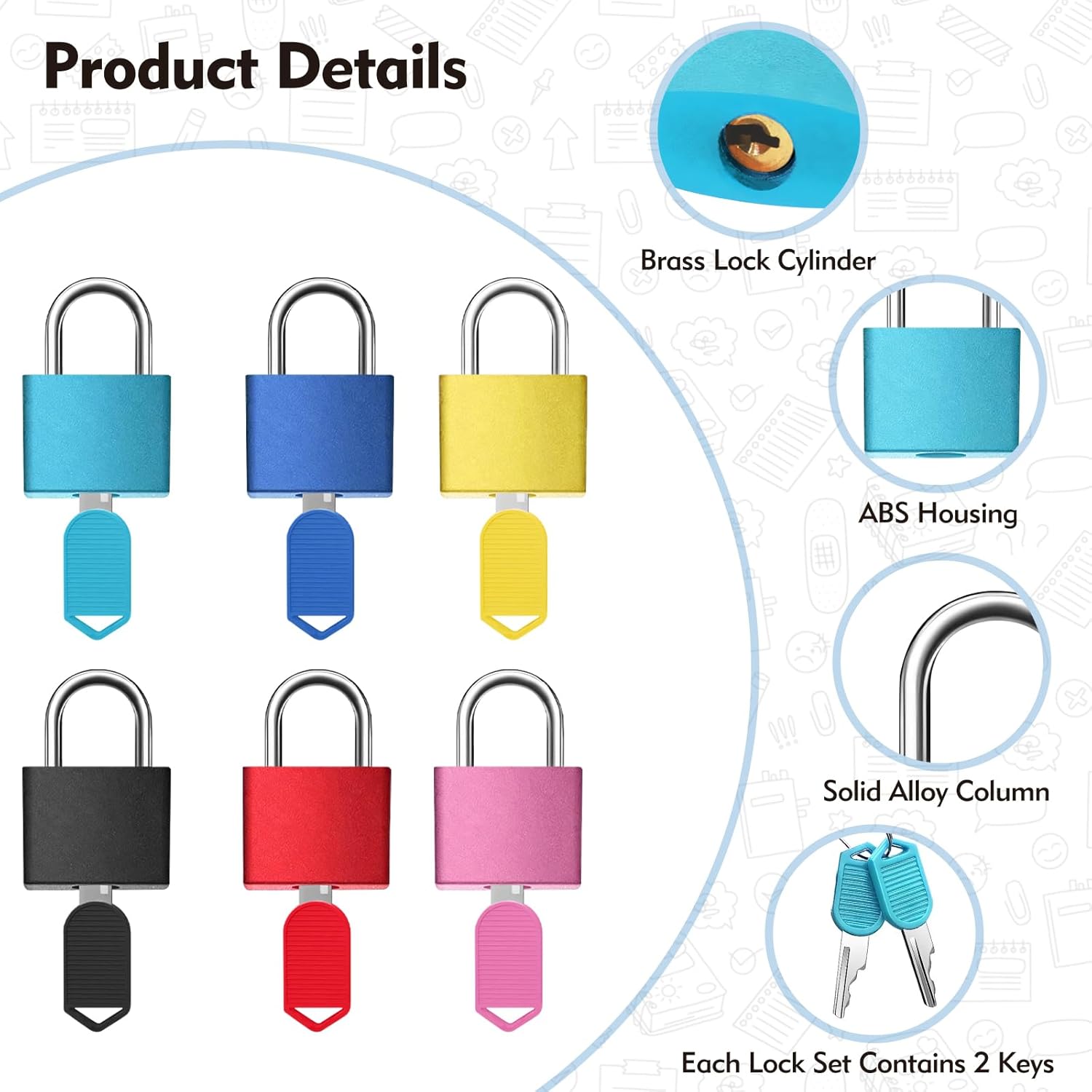 Lock Colors: Available in 6 colors, black, red, yellow, pink, blue and light blue.