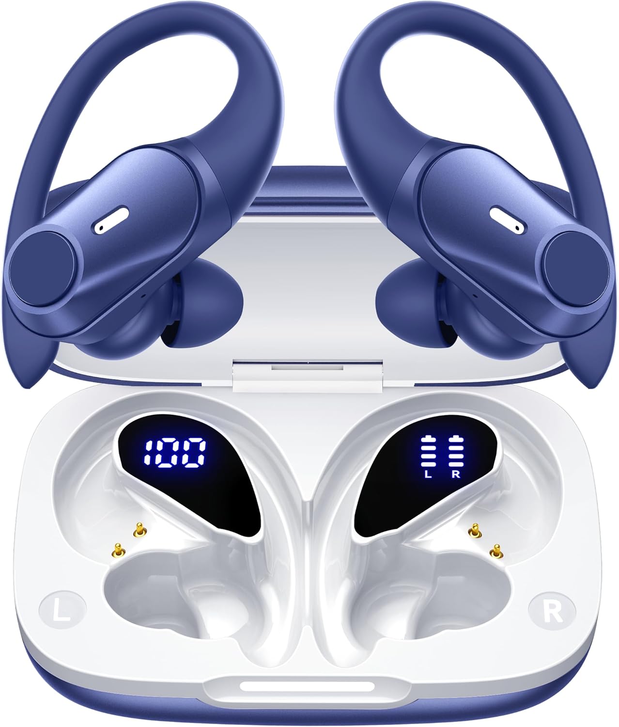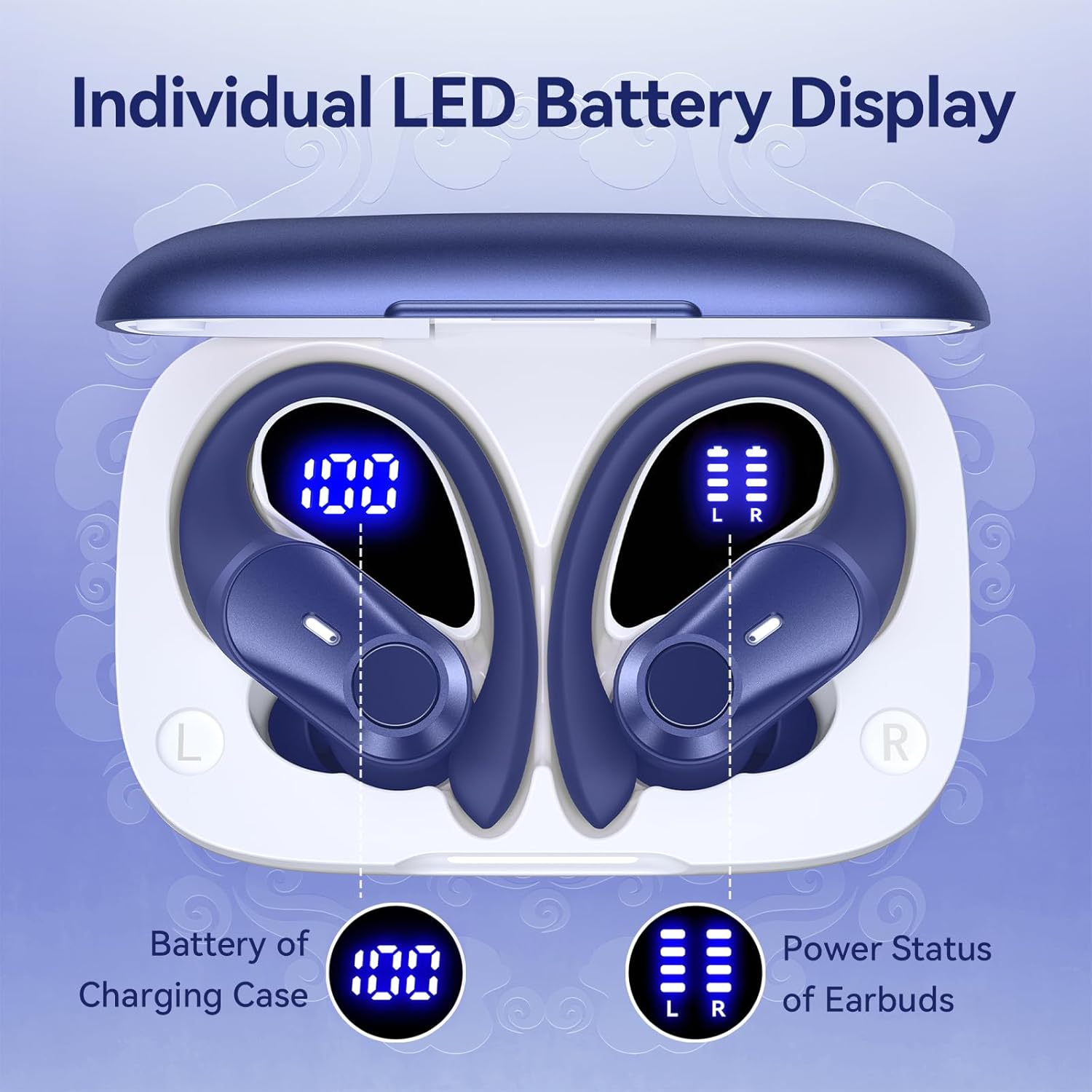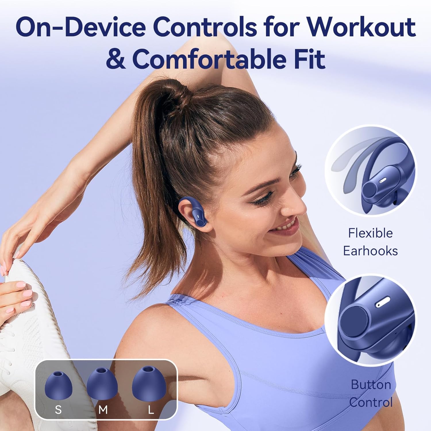Effortless Control, Anywhere You Go: Take full command of your music, calls, and playlists without stopping your flow. Physical buttons on these over ear earbuds let you play, pause, skip tracks, adjust volume, and answer calls instantly—even during commutes, workouts, or high-intensity sessions. The wireless charging case with Type-C port ensures quick top-ups anytime, keeping your ear buds powered, responsive, and ready for music, podcasts, or calls all day.