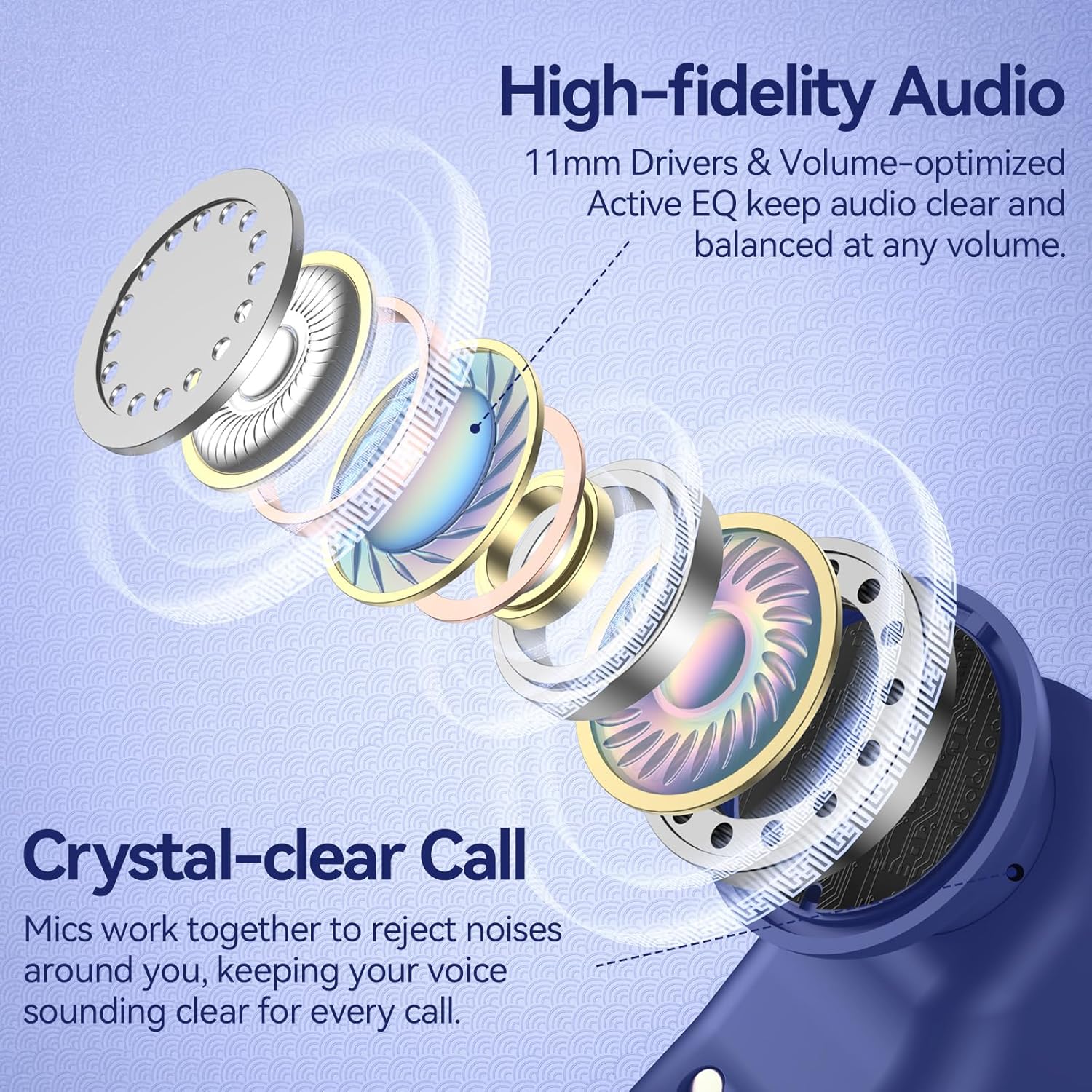 Immersive Hi-Res Sound That Moves You: Turn every commute, workout, or home session into a live music experience. These earbuds wireless bluetooth feature certified Hi-Res audio with 13mm dynamic drivers, delivering crisp highs, rich mids, and deep bass for full-spectrum sound. Advanced real-time bass tuning and lossless-quality transmission make every track punch harder while Multi-mic call clarity keeps your voice natural and clear—perfect for daily use, gaming, and streaming.