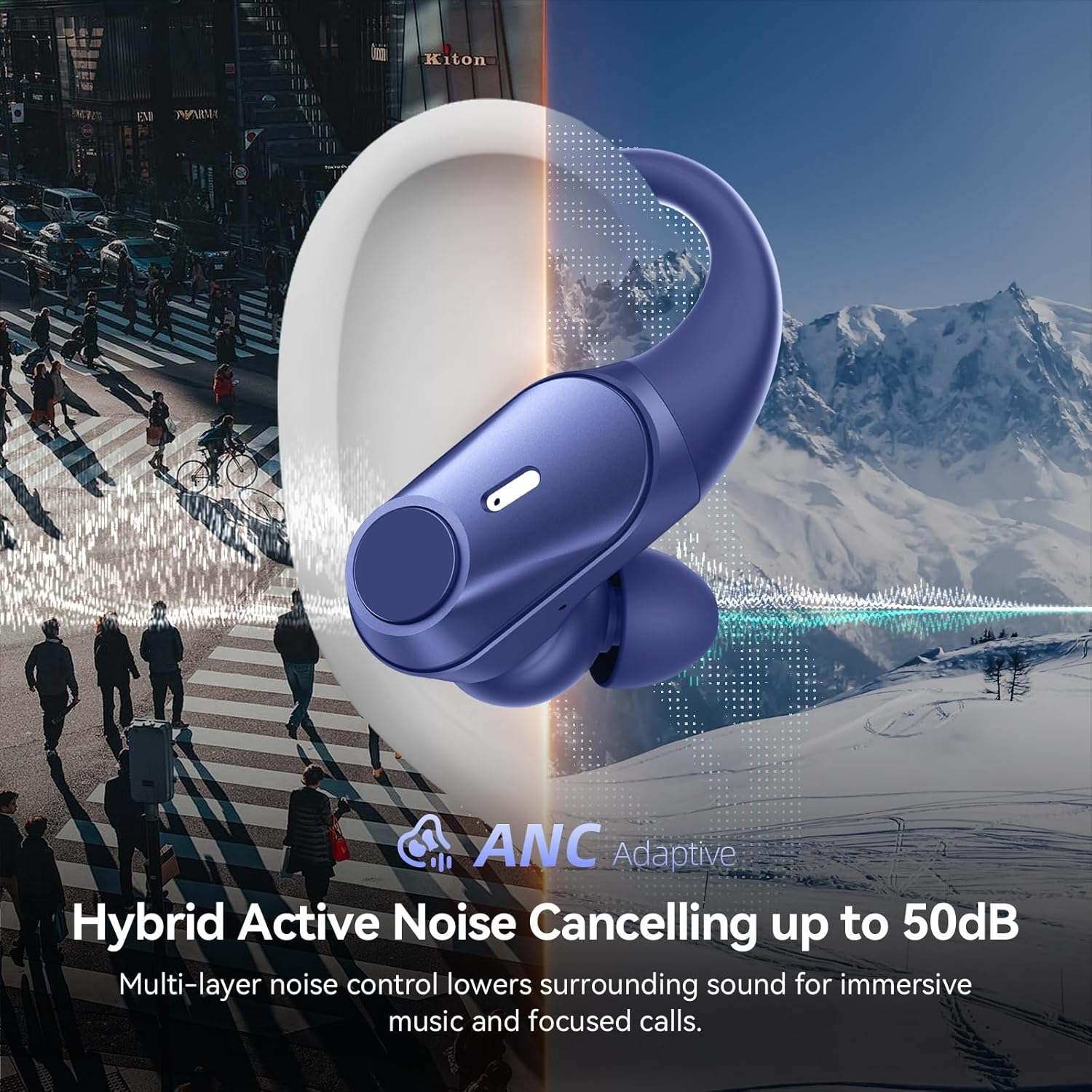 Secure Comfort That Moves With You: Experience all-day stability and comfort with these noise cancelling headphones featuring over-ear hooks and an ergonomic design that keeps your wireless earbuds secure during intense workouts, runs, or outdoor activities. The lightweight, pressure-free fit adapts to every ear shape while maintaining reliable performance in motion. From morning commutes to high-intensity training sessions, enjoy uninterrupted music, clear calls, and confidence with every step.