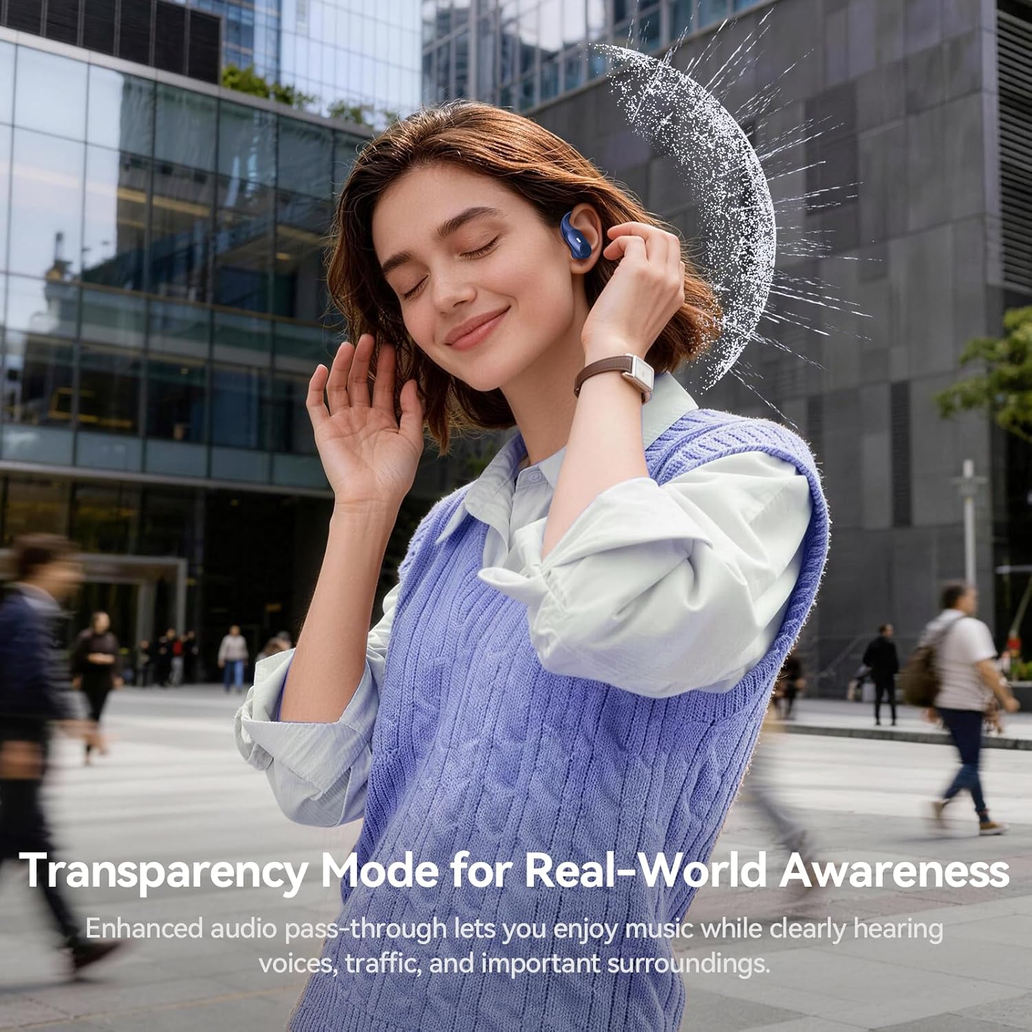 Adaptive Hybrid Active Noise Cancelling & Clear Calls: blocking up to 99.8% of noise with deep -50dB reduction in just 0.02s. Driven by a high-speed ANC chip and layered sound sensors, these noise cancelling earbuds auto-adjust to planes, subways, offices, and workouts for precision quiet. Switch to Transparency Mode to hear traffic or teammates safely. Multi-mic voice boost and wind-noise control keep every call sharp and clear—ideal for commuters, travelers, remote work, and high-energy days.