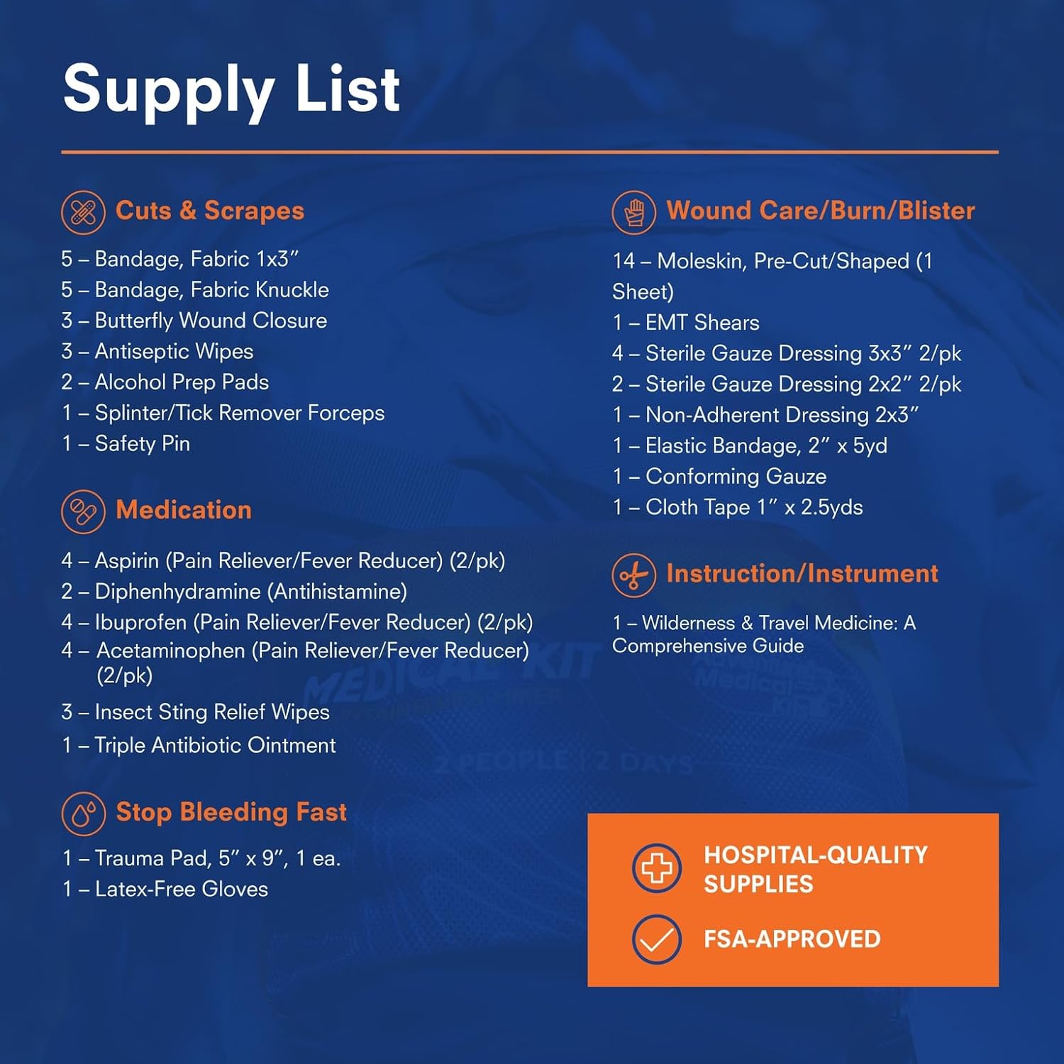 Expedition-Grade Kit: Designed to support up to 2 adventurers for up to 2 days, this mountaineer first aid kit is a must-have for extended outdoor excursions and remote expeditions