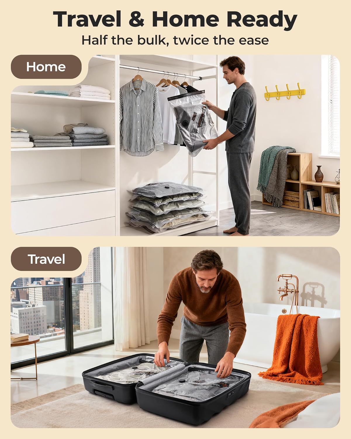 Effortless Packing & Organization: The lightweight, easy-grip pump is designed for portability. Wide-mouth bag openings make it simple to insert and remove bulky clothing, streamlining your packing process.