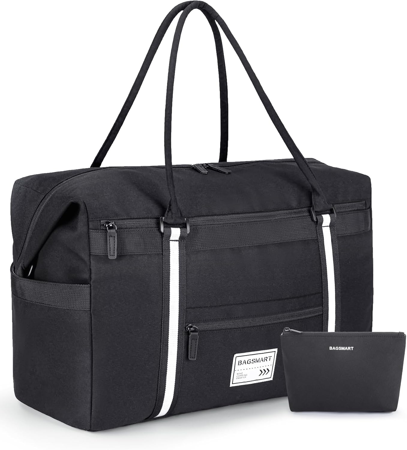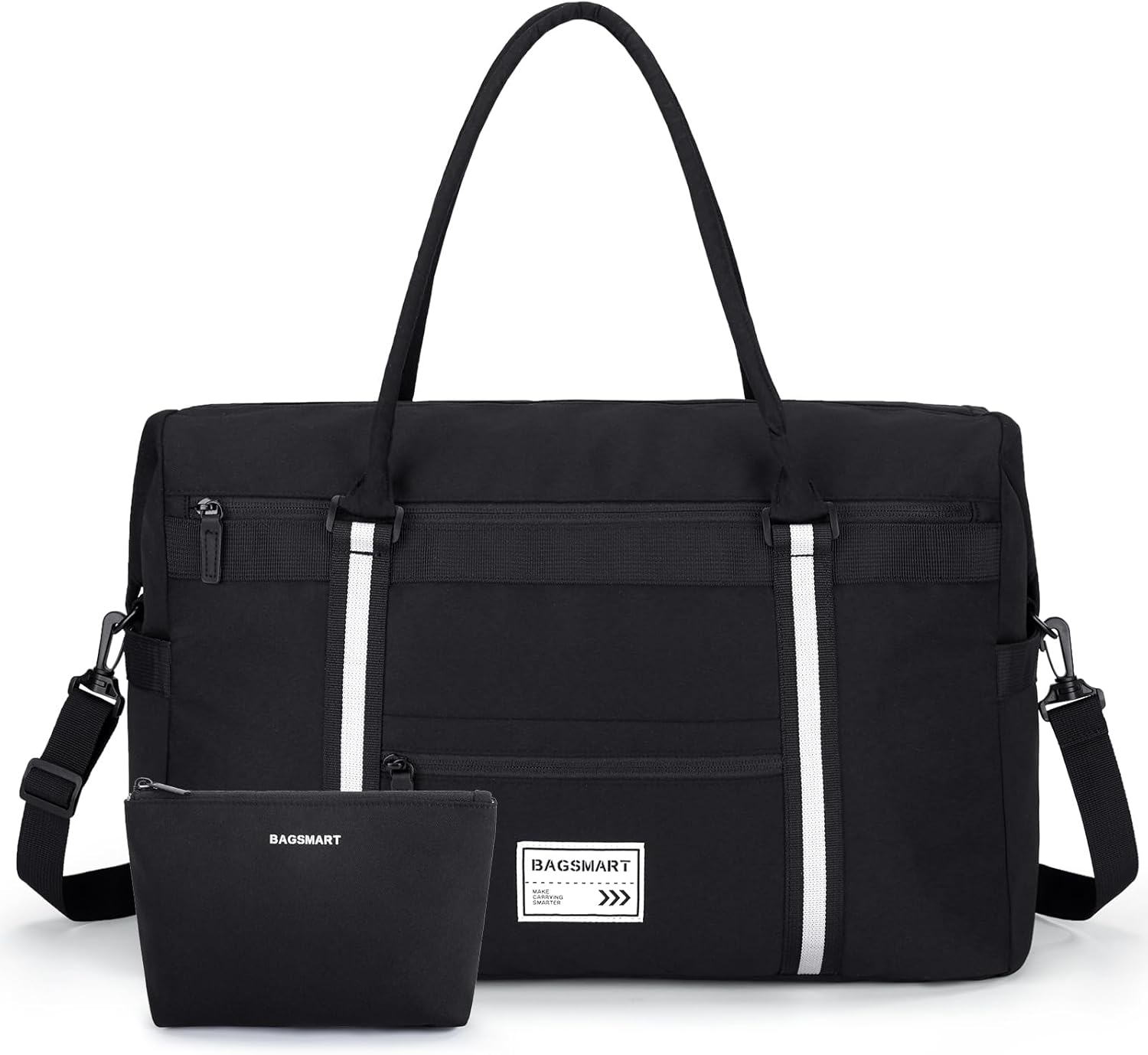 Thoughtful Features: Polyester materials offer a cozy feeling with soft tactile. Durable duffle bag for a 2-4 day trip, 0.75kg. Including an adjustable shoulder strap + trolley sleeve + extra cosmetics bag, our carry-on bag makes your travel more convenient