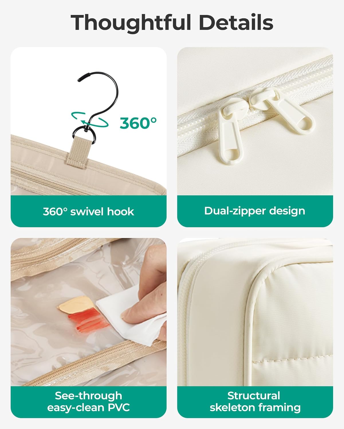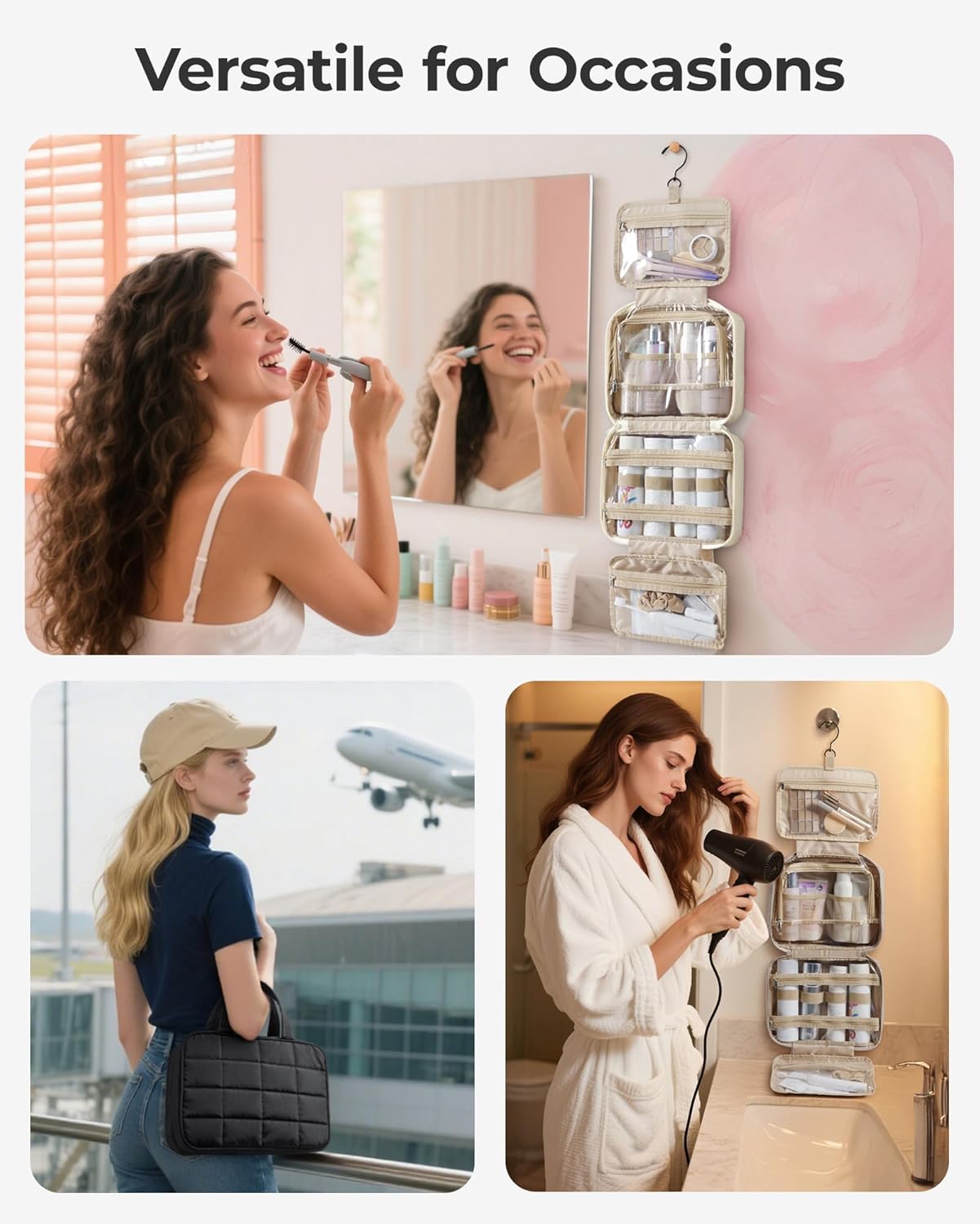 𝐂𝐨𝐧𝐯𝐞𝐧𝐢𝐞𝐧𝐭 𝐃𝐞𝐬𝐢𝐠𝐧: Travel bag for toiletry stow-away 360-degree swivel non-slip metal hook for versatile hanging options, carry handle doubles as its hanging strap, two-way zipper closure for quick access