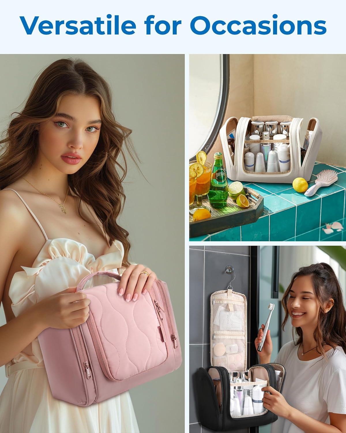 Durable Material: Crafted from lightweight and water-resistant fabric, this toiletry bag for women is easy to clean and protects your belongings from splashes, making it ideal for travel and everyday use.