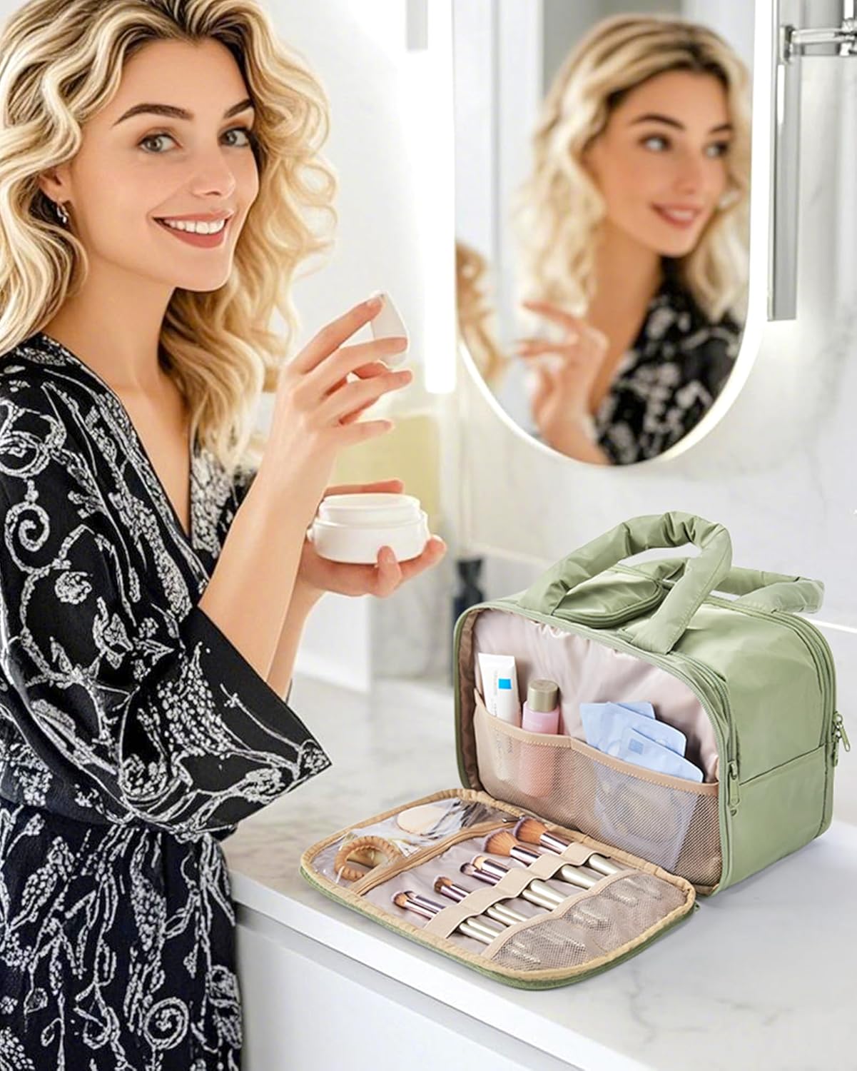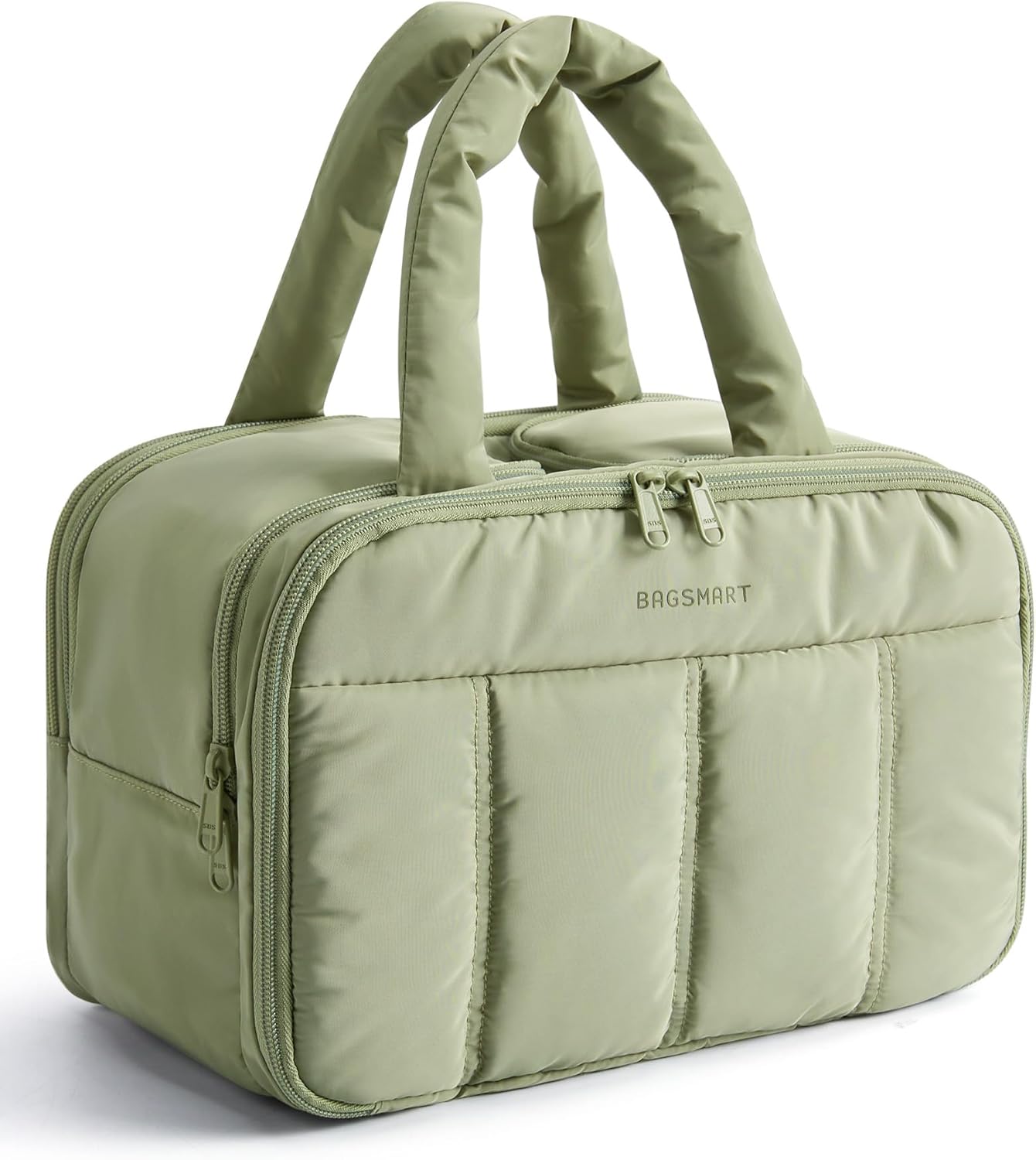 Cute and Soft Materials & Handle: The handle is also made of soft material to relieve your pressure. Made of soft and luxurious fabric, this puffy toiletry bag is like a soft, stretchy pillow, a super cute toiletry bag. Efinitely an ideal Christmas gift for yourself, your family, and your friend.
