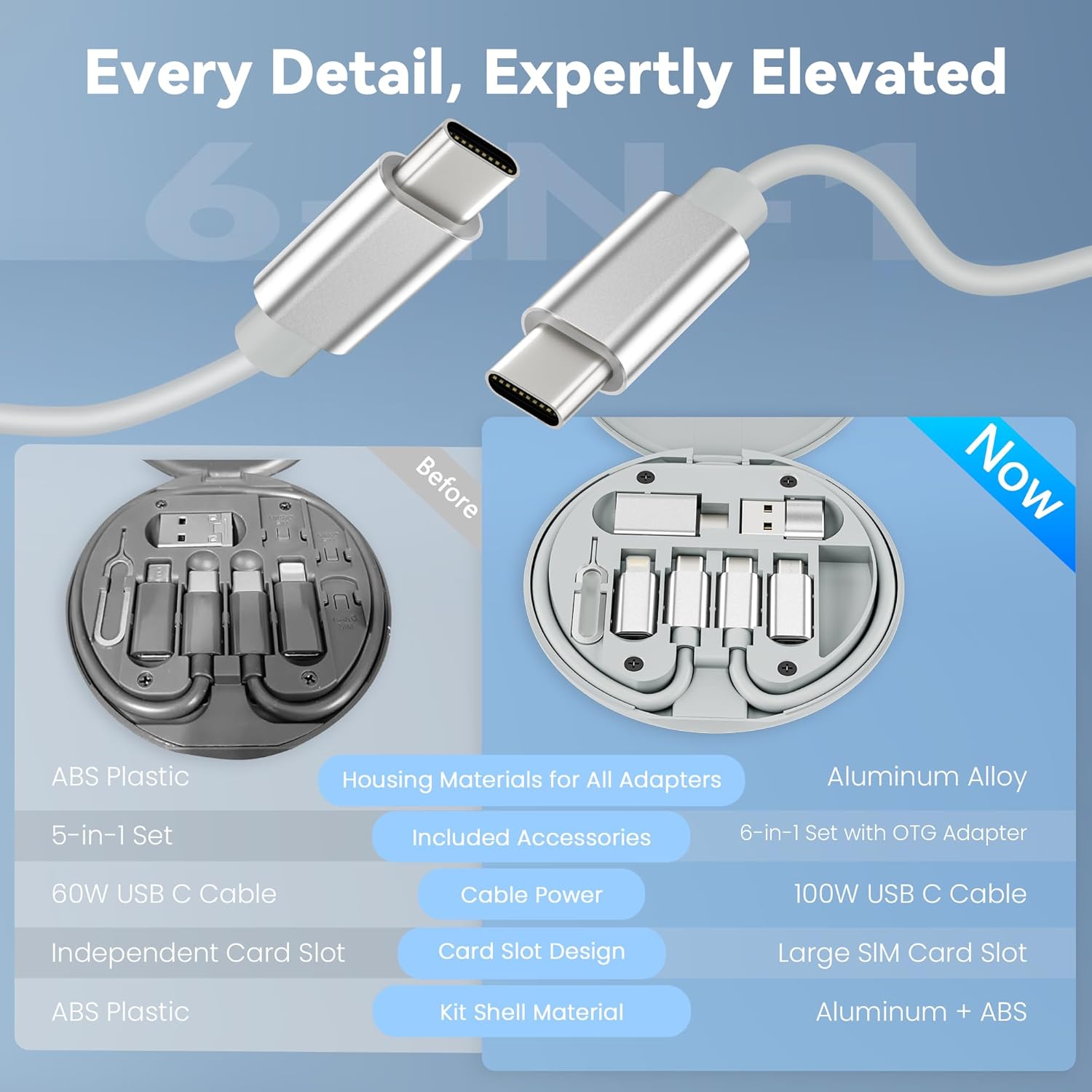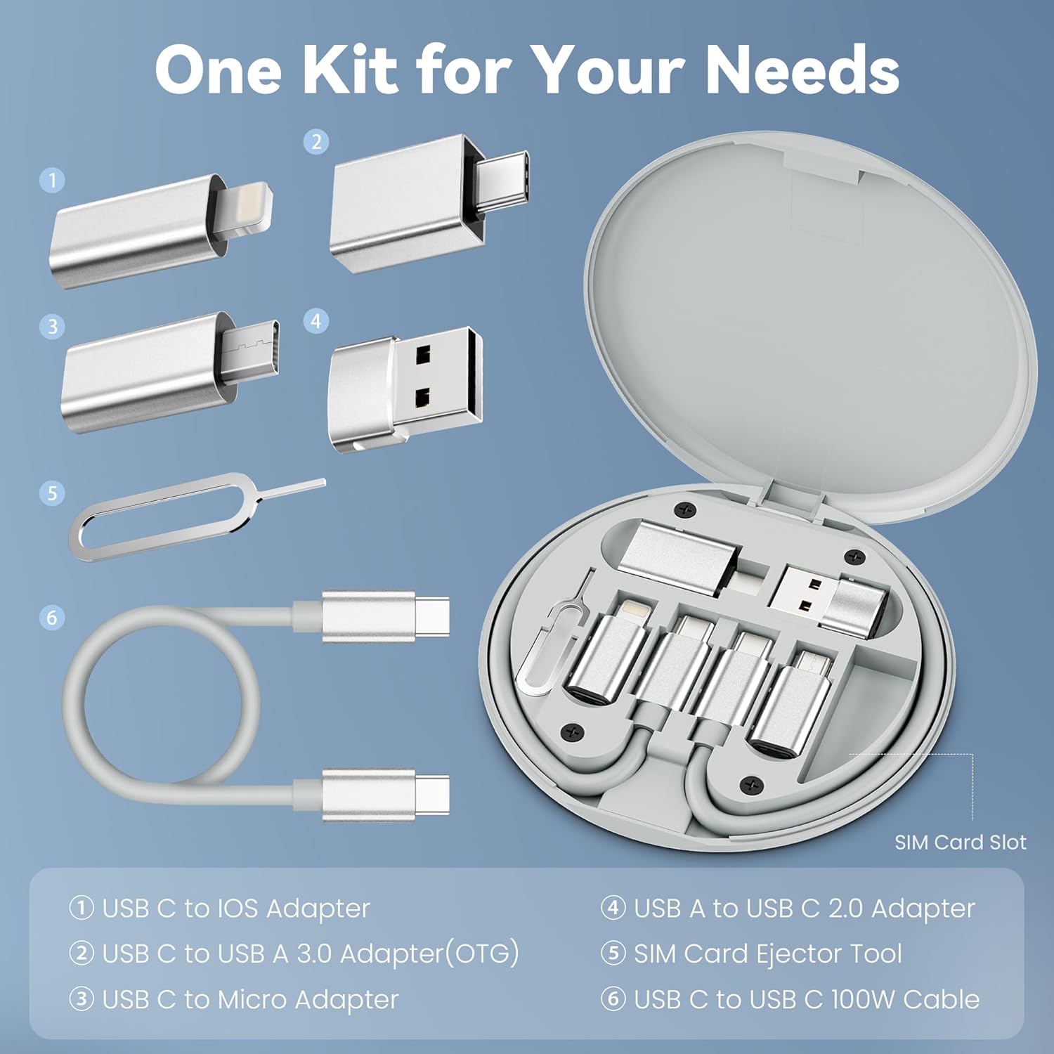 6-in-1 Convenience: Our Multi-Functional Portable Charging Kit is designed to handle all your power and connectivity requirements. The set includes multiple essential adapters and a 100W USB C to USB C cable, this kit ensures you’re always prepared, wherever you are – at home, at work, or on the go.