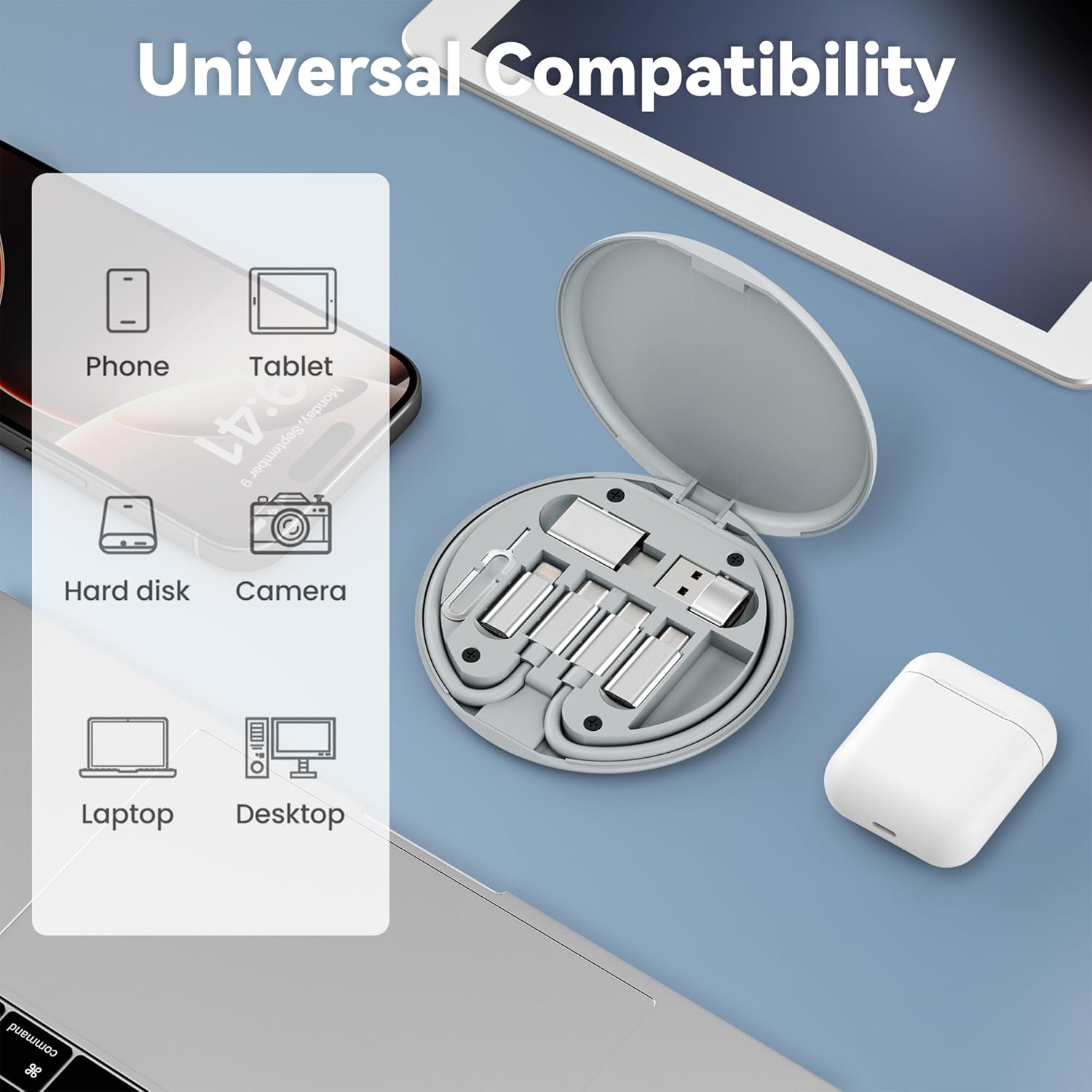 Compact and Travel-Ready: Designed for on-the-go convenience, this kit includes a SIM card ejector tool and a dedicated SIM card storage slot. The compact round case (9.5 cm / 3.74 inches in diameter × 1.3 cm / 0.51 inches thick) easily fits into bags, backpacks, or pockets, keeping your essentials neatly organized wherever you travel.