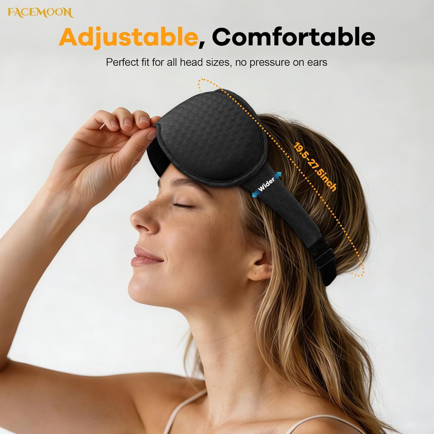 Adjustable, Ear-Friendly Strap for All-Night Comfort: A soft, wide adjustable strap stays securely in place without pulling hair or pressing on ears. Designed to reduce pressure points and movement disruption, it supports uninterrupted rest whether you sleep on your back, side, or move during sleep.