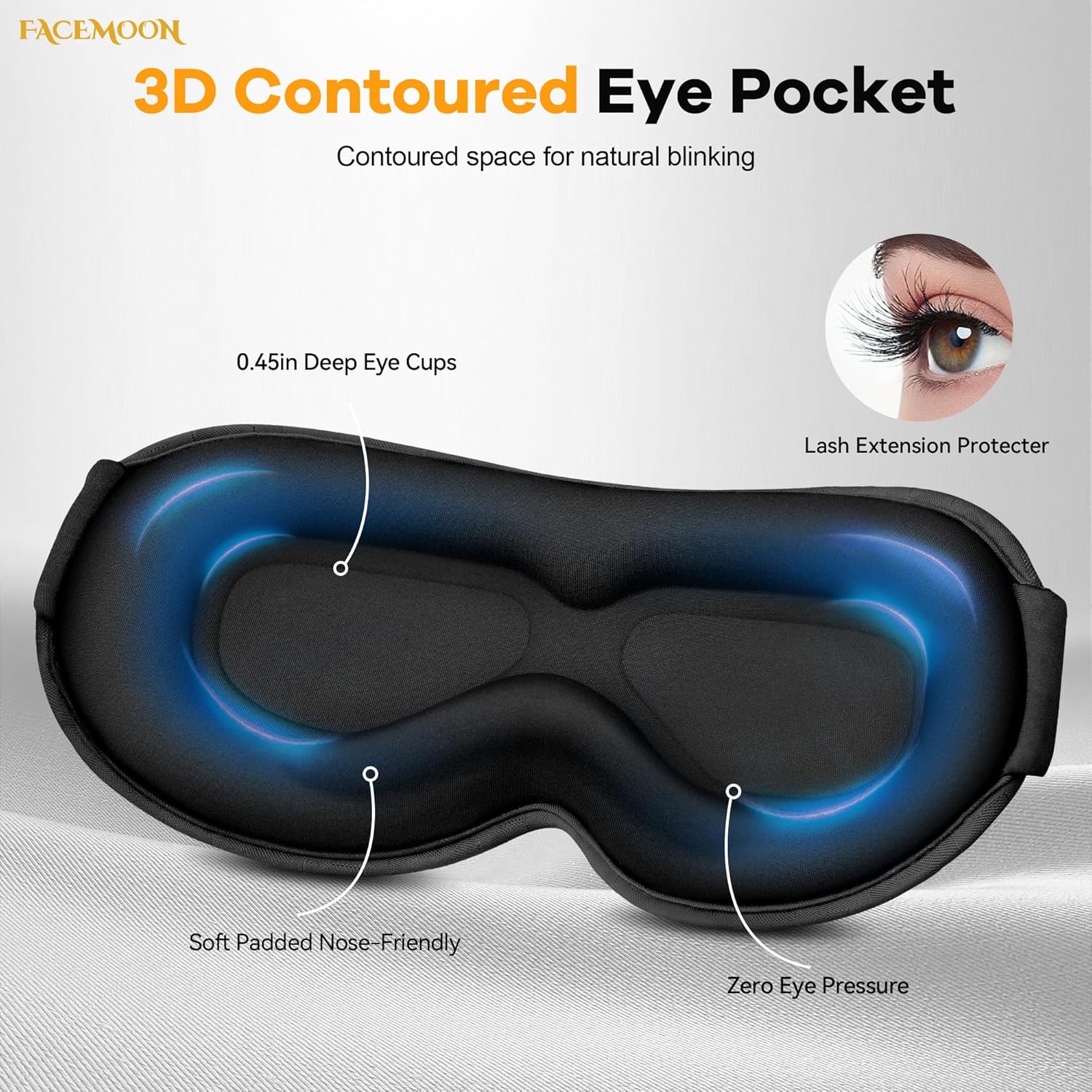 Zero Eye Pressure with Deep 3D Contours: Extra-large 3D contoured eye cups fully remove pressure from eyelids and lashes, allowing natural blinking and comfortable eye closure. Designed for sensitive eyes, dry eyes, or light-sensitive sleepers who need true rest without irritation, makeup smudging, or compression discomfort.