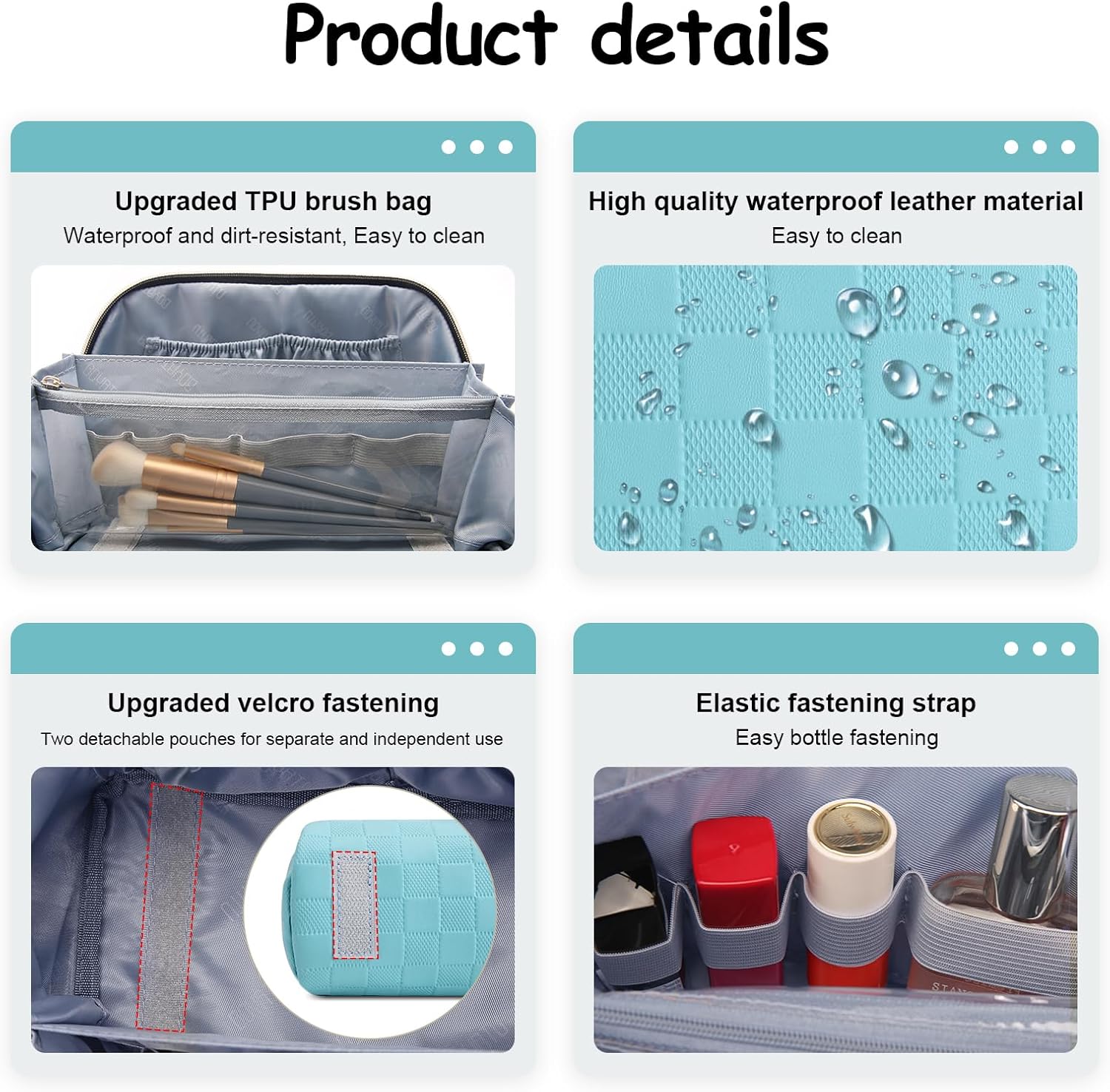 Waterproof Leather Travel Make up Bags for Women: This makeup travel bag is made of high-quality Vegan leather, soft to the touch, waterproof and easy to clean, not easy to fade. Stain-resistant material stays flawless for years, not months.