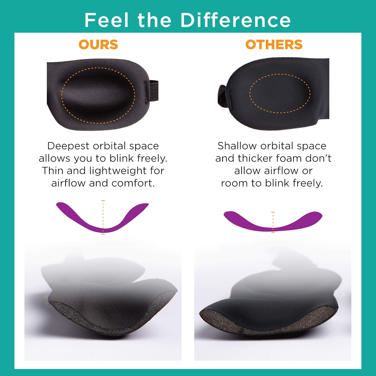 REST IN COMFORT – Ultra lightweight latex-free molded foam is contoured for pressure free eye comfort that allows you to blink freely, won’t smudge makeup, false lashes, or put unwanted pressure on your head