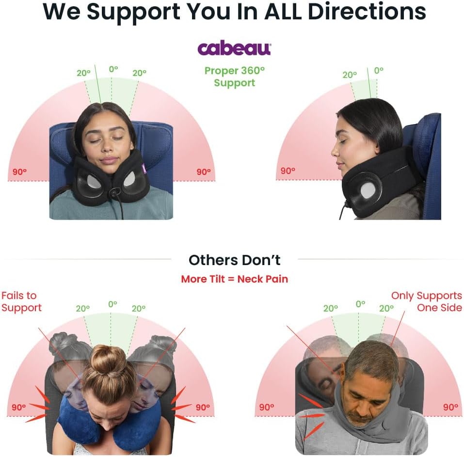 Cabeau’s unique high-profile sides cradle the head and neck for 360-degree support
