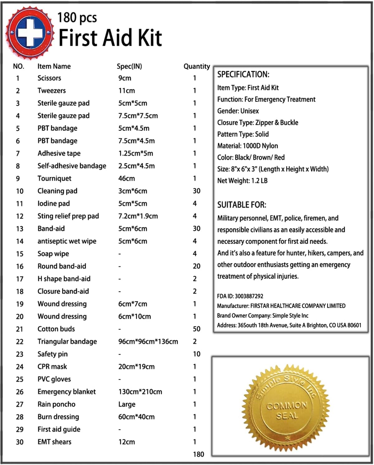 ★INCLUDED: 180 piece essential medical supplies for backcountry expeditions. Be Desmond Thomas Doss saving your family and friends in an emergency.