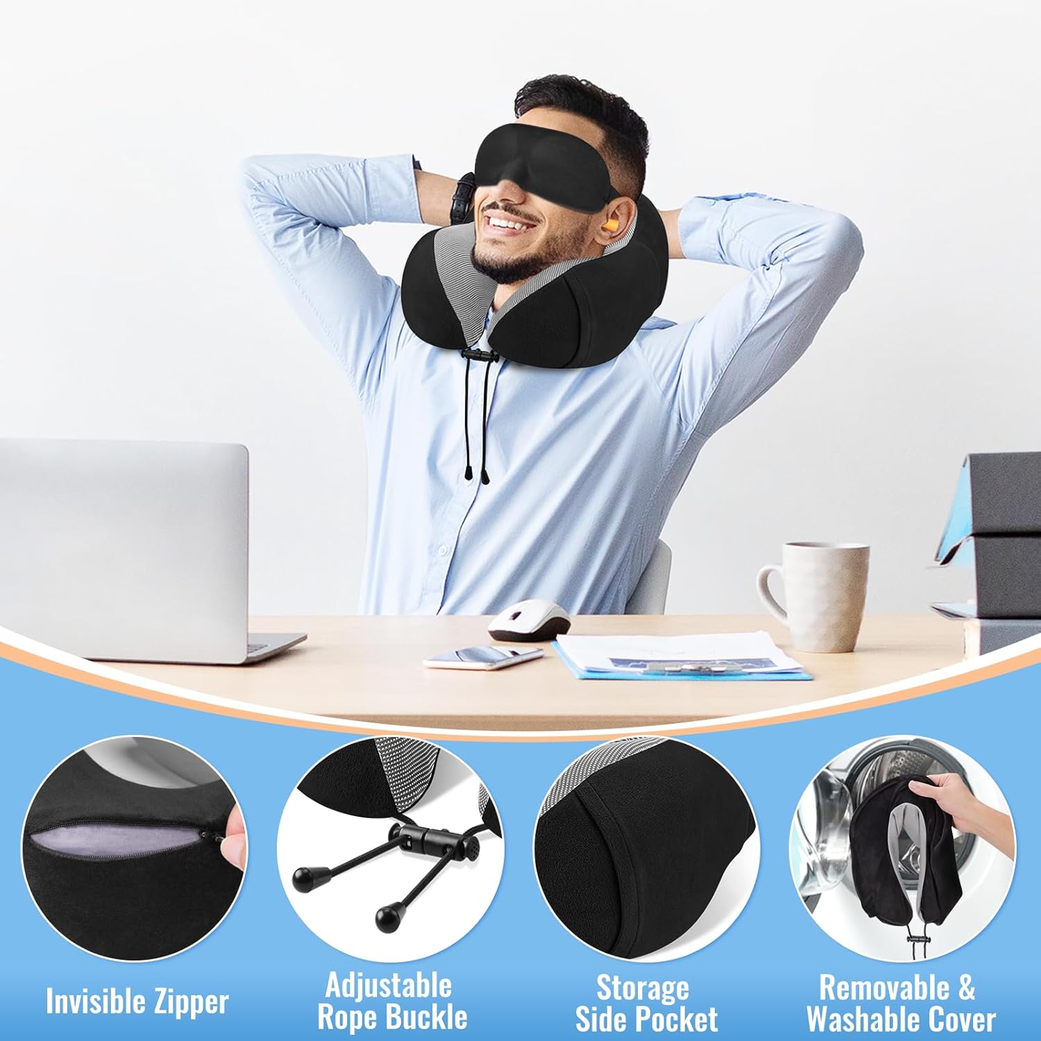 【Thoughtful Details】We hide the zipper to avoid direct skin contact with the chain, effectively avoiding scratches, and the appearance looks cleaner; equipped with eye mask, earplugs, earplugs case to meet your resting needs when traveling; designed with storage side pockets, you can store them on the go during use