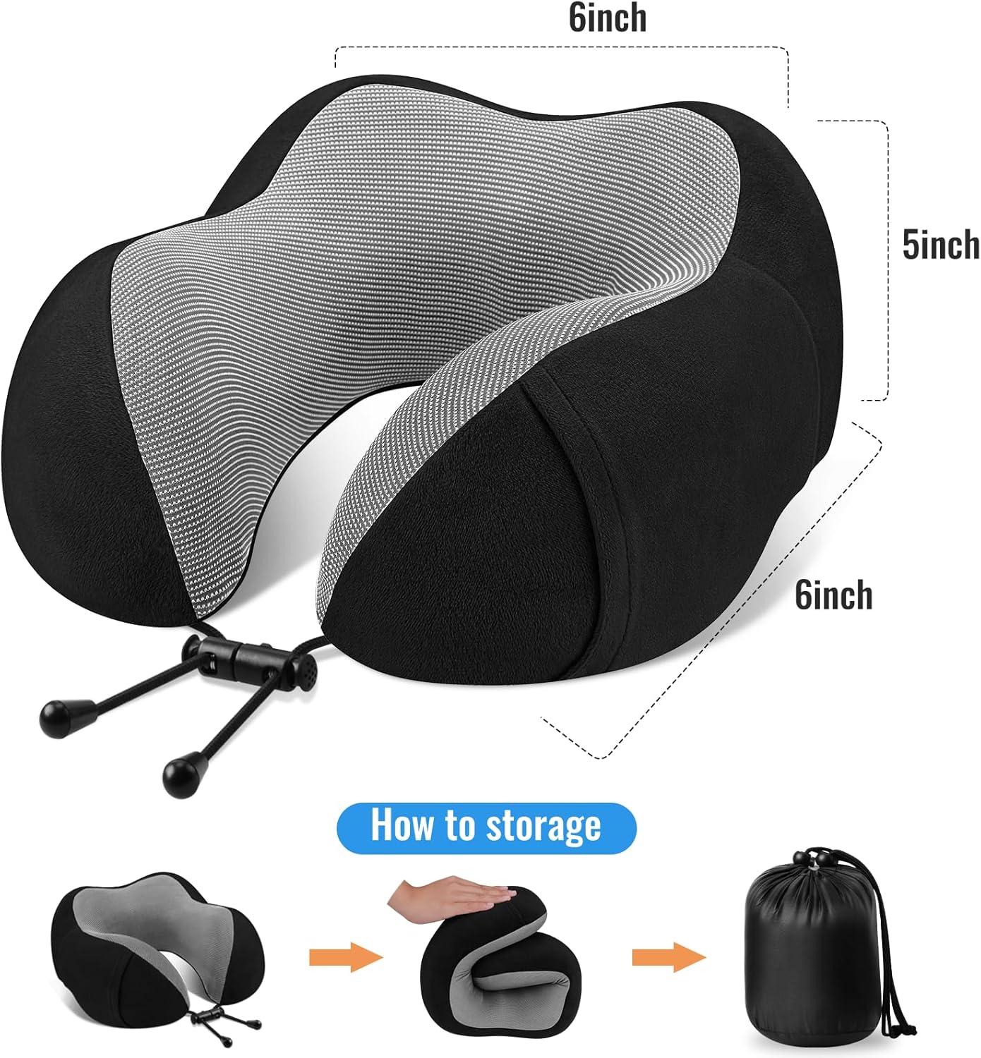 【Portable & Space Saving】The size of the travel pillow is 11*10*5.2 inches with a portable travel bag. With its snap button, this neck pillow can be attached to your luggage without taking up extra space, making it more convenient for you to carry
