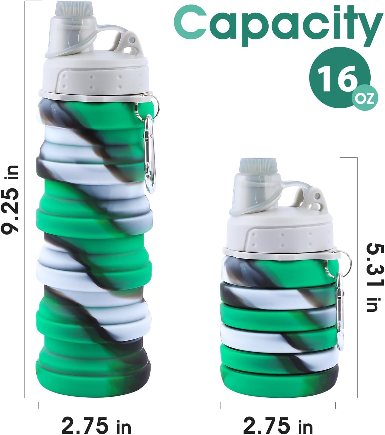 🍼Space-Saving Foldable Design🍼: Holding up to 17oz, this collapsible water bottle conveniently folds down to half its size, making it super easy to store in your backpack, gym bag. Whether you’re hiking, camping, traveling, or hitting the gym, this collapsible water bottle’s compact design lets you carry it with ease, saving valuable space when you’re on the move.