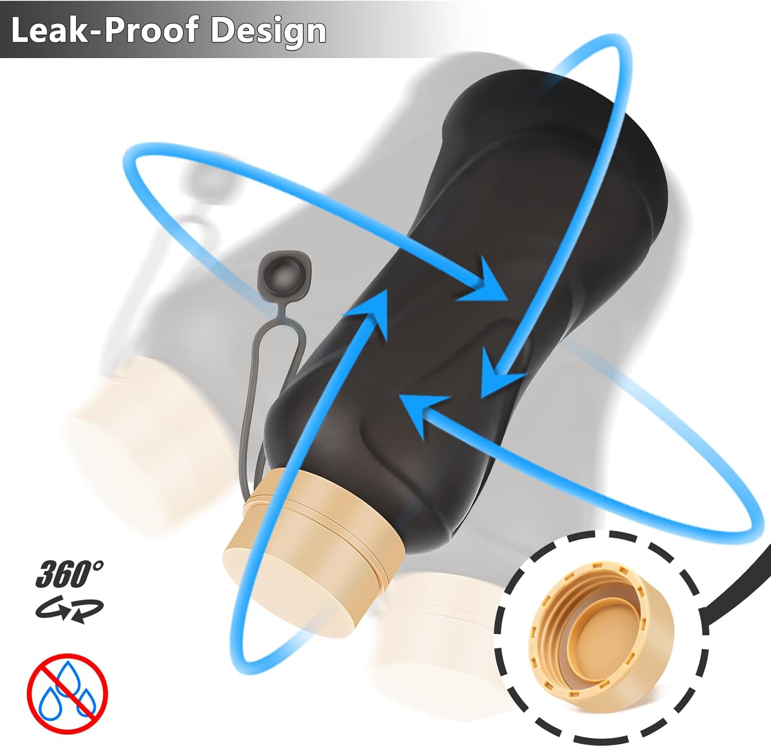LEAK-PROOF AND EASY TO CLEAN: These reusable silicone water bottles feature a leak-proof construction with a tight-fitting cap to prevent spills and leaks. In addition, the wide neck design make it easy to clean and ensure a healthy drinking experience. Dishwasher safe.