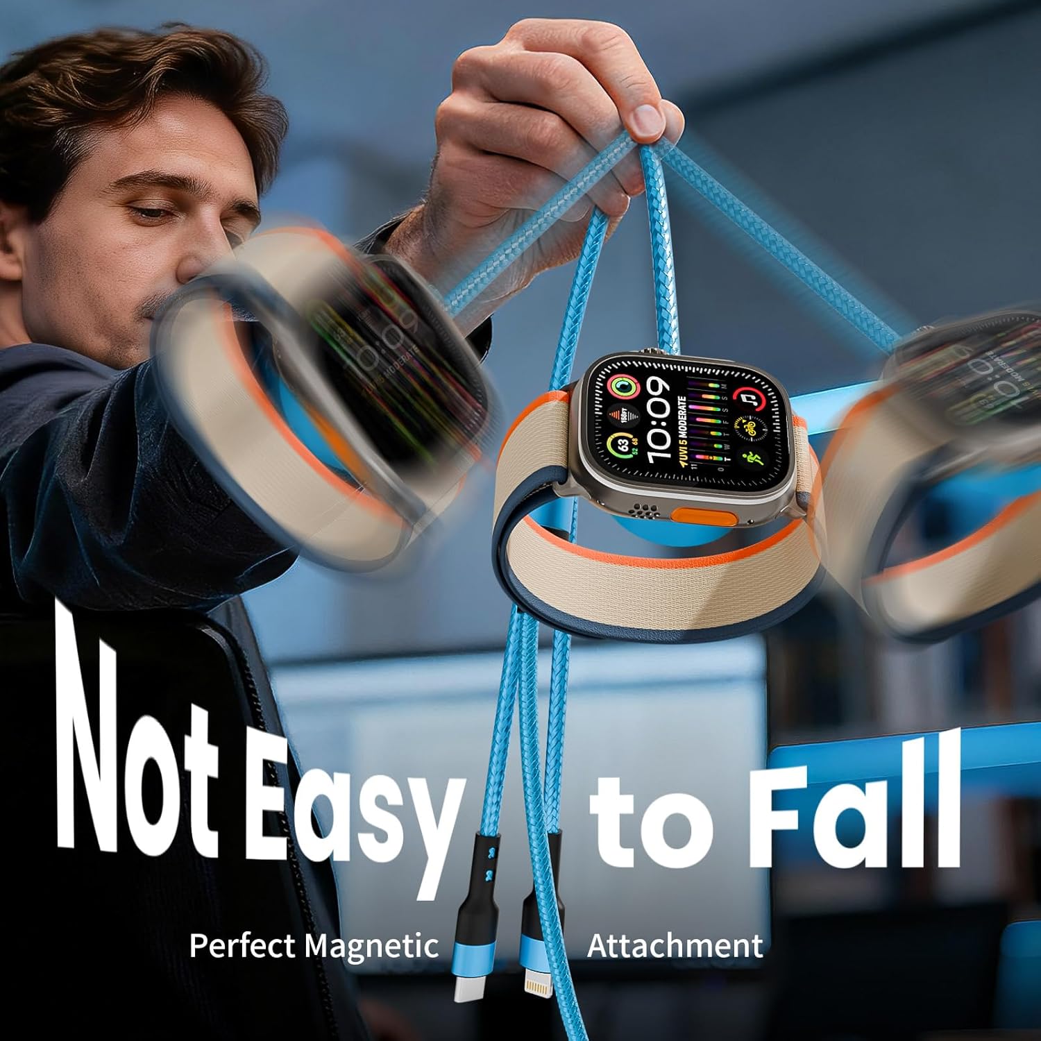 Secure Magnetic Apple Watch Charger — Charge with Confidence Engineered specifically for Apple Watch, this charger features a strong magnetic connection and a smart chip that prevents overcharging and overheating. Made with a high-purity copper core, it delivers stable and reliable power — day or night, at home or on the go. (Note: For optimal performance, remove thick cases before charging. Compatible only with Apple Watch)