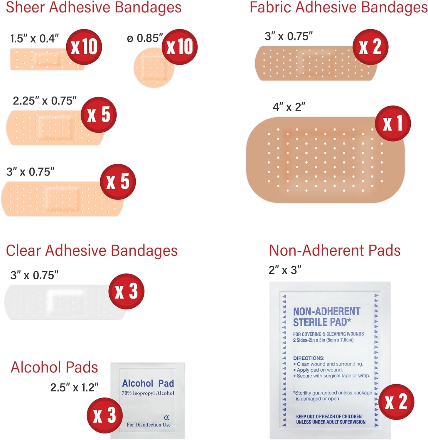 🧳 𝗗𝗨𝗥𝗔𝗕𝗟𝗘 𝗔𝗡𝗗 𝗪𝗘𝗟𝗟-𝗢𝗥𝗚𝗔𝗡𝗜𝗭𝗘𝗗: Made with a durable, water-resistant nylon case, our first aid kit is built to last. Inside, you’ll find clearly labeled compartments, making it easy to quickly locate the supplies you need in an emergency, including adhesive bandages.