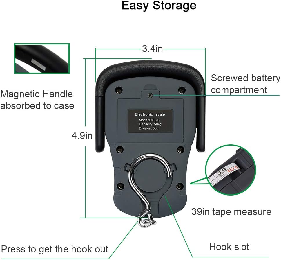 USER FRIENDLY – This electronic scale has 3.5″ rubber-coated handle for comfortable grip; Largest backlight LCD display; Hold function allows you to read after putting down your heavy bag; The hook of our hanging baggage scale is large enough for almost all handles.