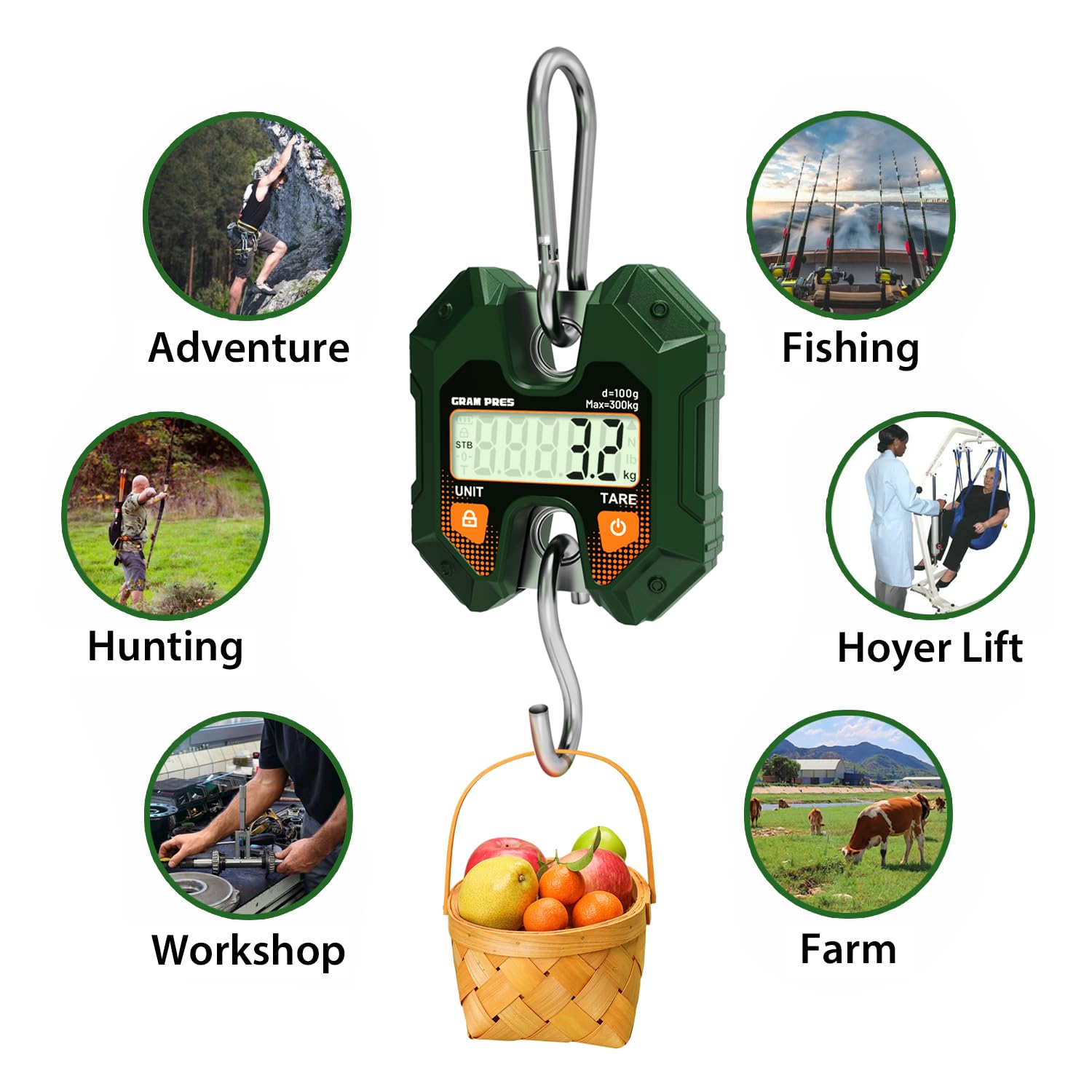 Widely Used:Hanging scales are portable and sturdy, suitable for home garage, fishing, hunting, farming, biking, large luggage, postal transport,bow draw weight scale and so on. Handheld hard hook.