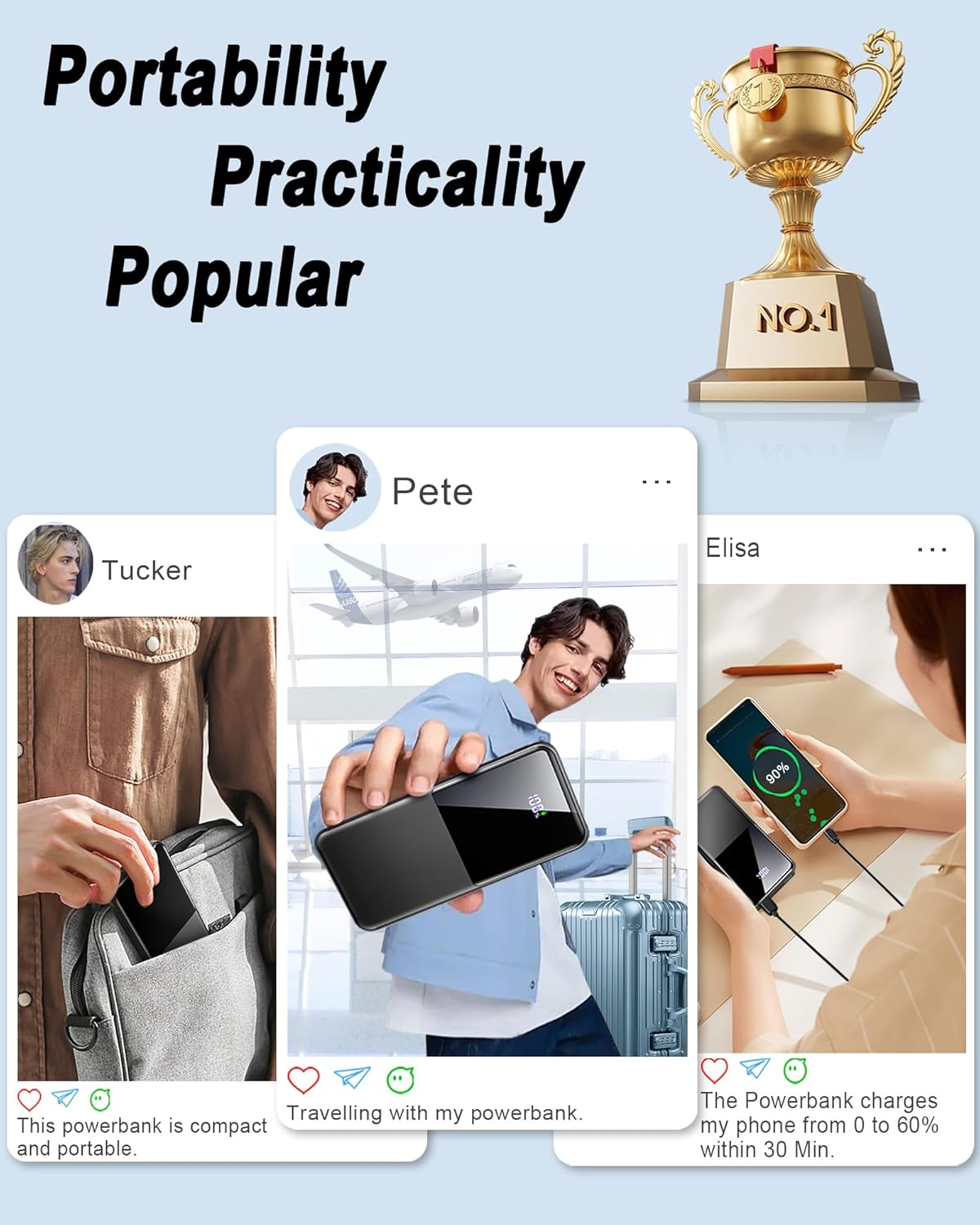 10000 mAh Power Bank & Universal compatible: 10000mAh Ultra-Large Cell Capacity phone power bank will keep your phone running all day. No more worrying about your phone running out of juice during outdoor activities like hiking. Compatible with most tech devices on the market, full capacity support charge iPhone 8 3.8 times, Samsung S23 1.8 times, iPad mini1 1.6 times.