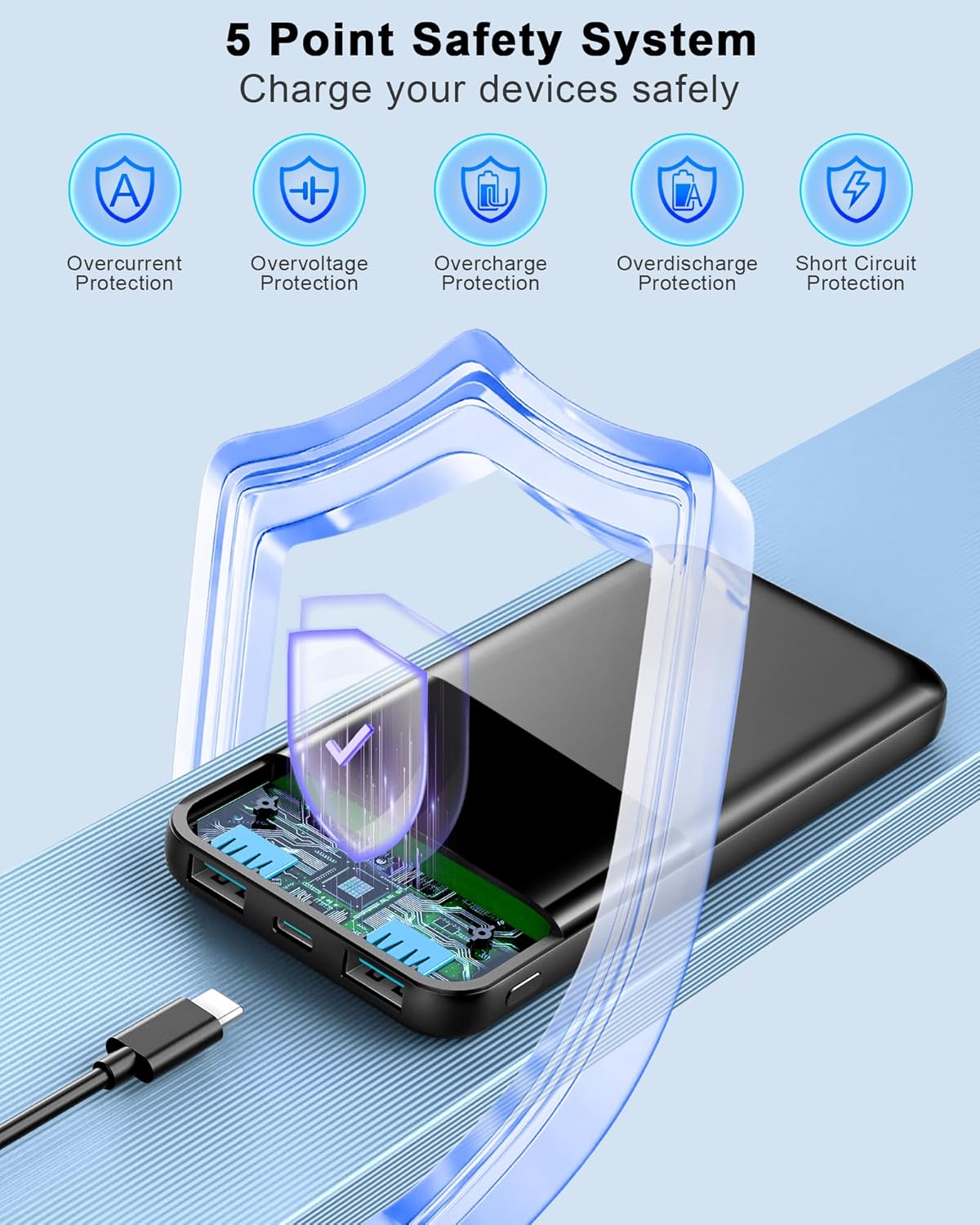 High-Quality Material and Superior Compatibility: This power bank is made from premium, durable materials that ensure safety and longevity. It is designed to be safe, with built-in protections against overheating, overcharging, and short-circuiting, giving you peace of mind while charging your devices. Supports PD3.0/QC4.0 /QC3.0/AFC/FCP protocols that are tailored to various electronic devices. Just to let customers get a safe product.