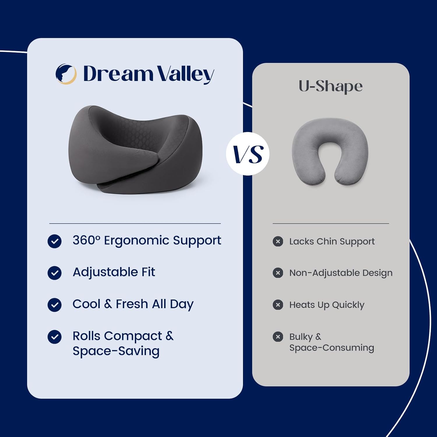 The video showcases the product in use.The video guides you through product setup.The video compares multiple products.The video shows the product being unpacked. Dream Valley Cooling Travel Pillow Merchant Video