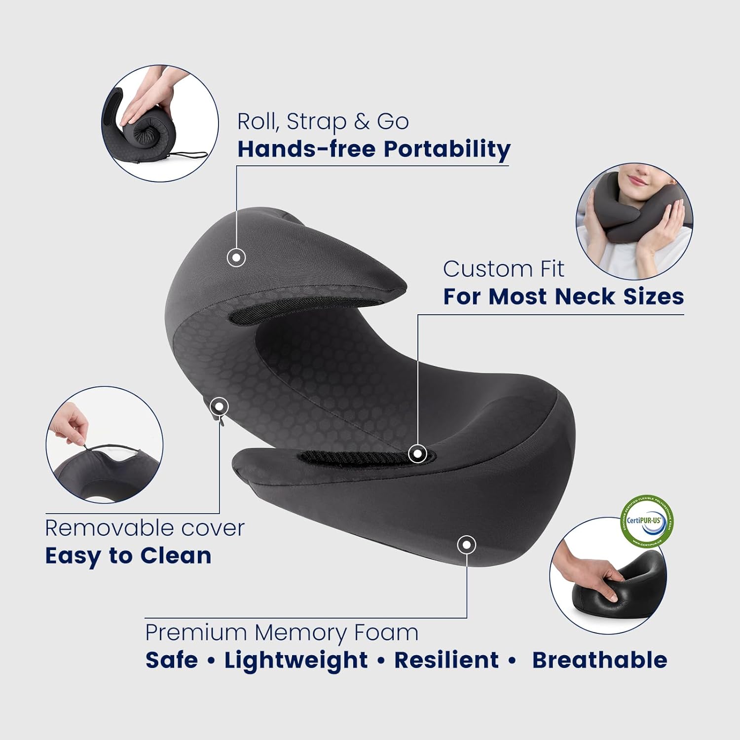 PCM Premium Cooling Travel Neck Pillow: Powered by German Outlast PCM technology, this cooling neck pillow absorbs excess heat and regulates temperature, reducing sweat and keeping your neck cool and comfortable during long flights or extended travel.