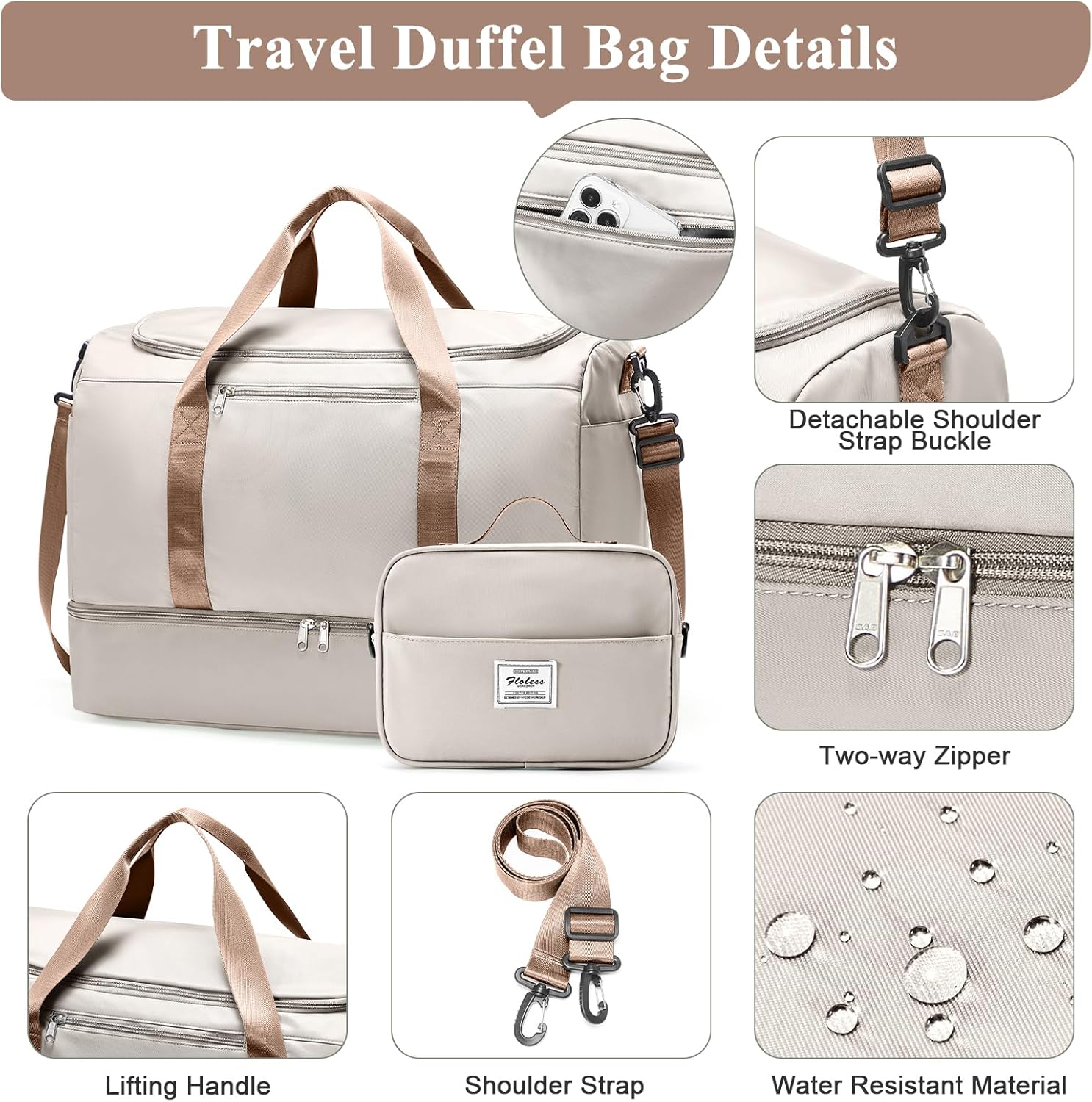 Wet Pocket & Trolley Sleeve: Features a high-density waterproof wet pocket to isolate damp towels or swimwear from dry items. The integrated trolley sleeve slides effortlessly over luggage handles, freeing your shoulders and making airport commutes or busy city travel completely hassle-free