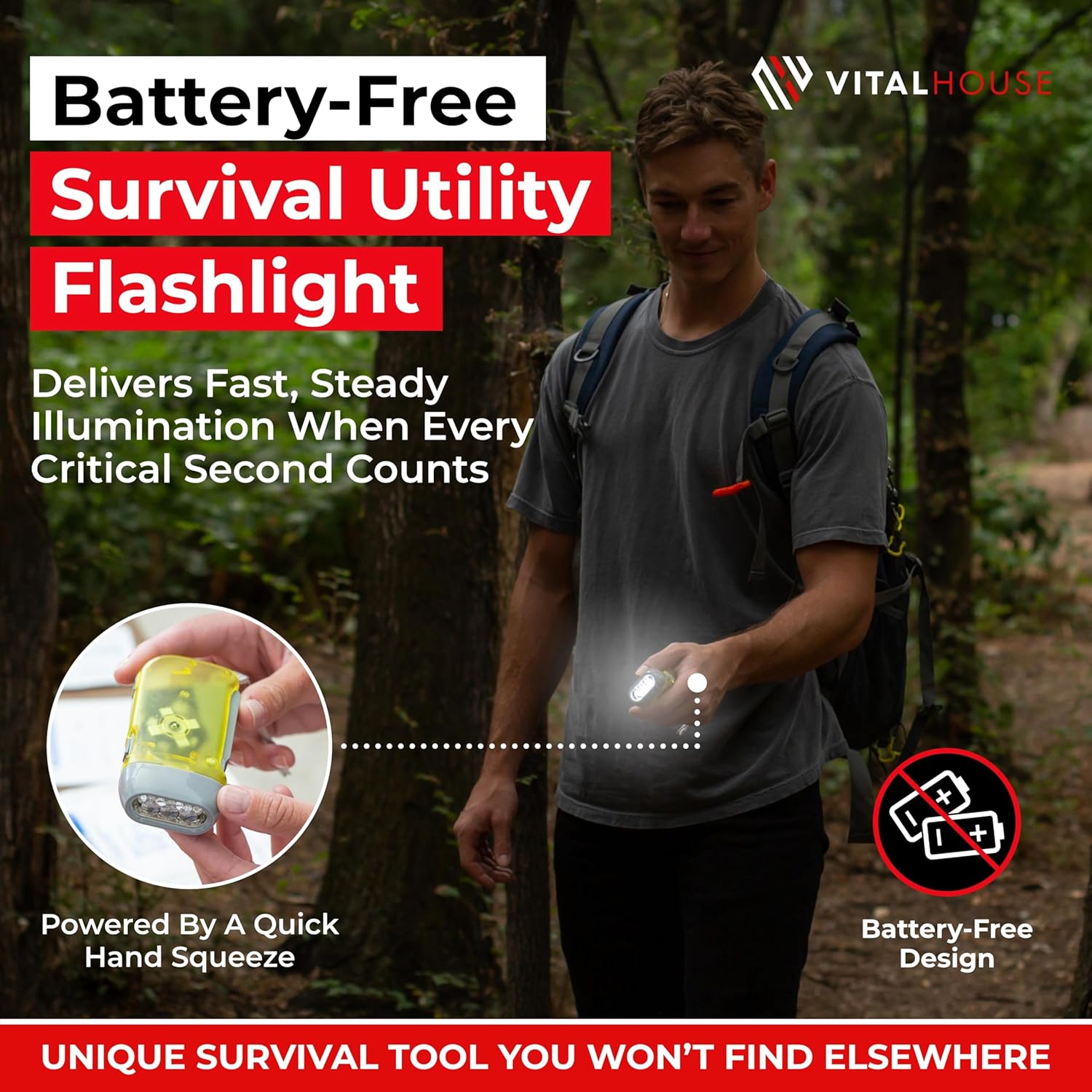 🔦 𝗦𝗠𝗔𝗥𝗧 𝗧𝗢𝗢𝗟𝗦 𝗕𝗨𝗜𝗟𝗧 𝗙𝗢𝗥 𝗥𝗘𝗔𝗟 𝗘𝗠𝗘𝗥𝗚𝗘𝗡𝗖𝗜𝗘𝗦 — A battery-free emergency flashlight works in any situation — no dead batteries, no delays. The magnifying tweezer removes splinters, glass, and debris with precision. Includes a step-by-step First Aid Guide so anyone can respond with confidence, even under pressure.