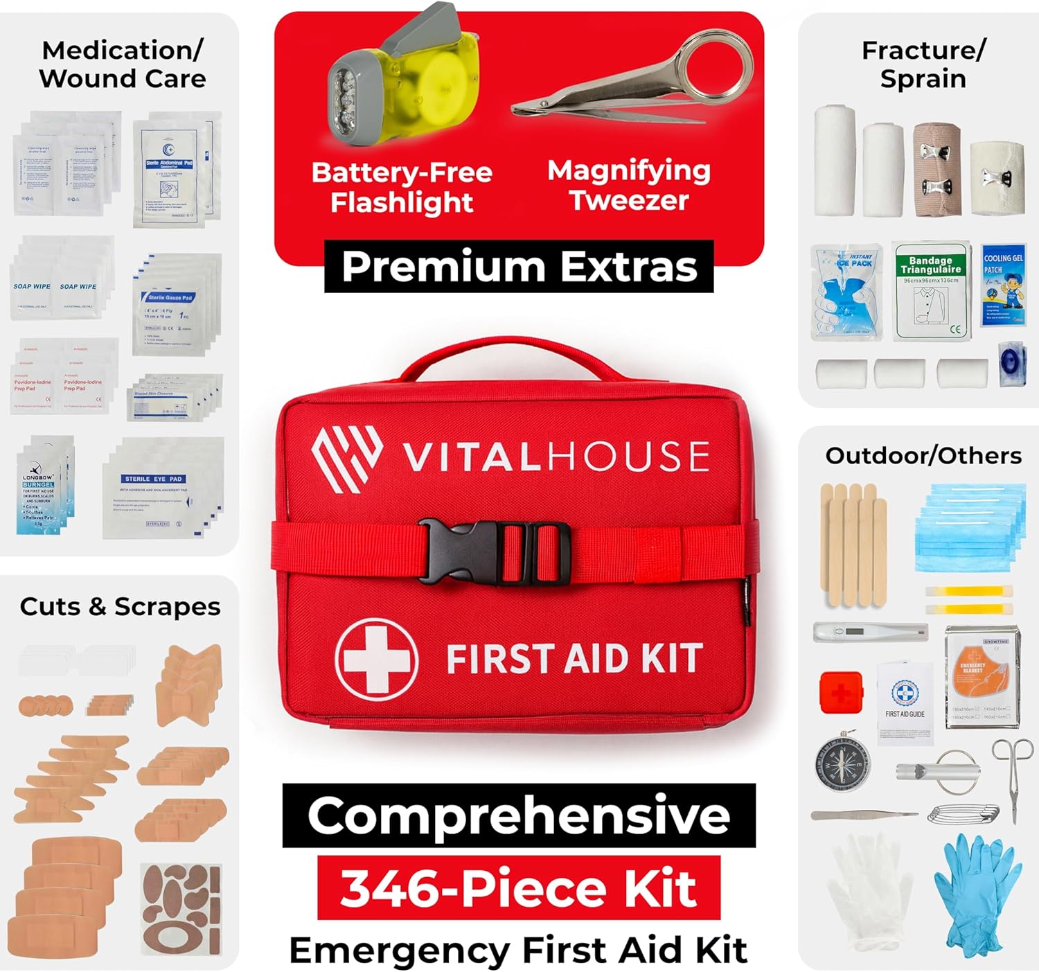 🩺 𝟯𝟰𝟲-𝗣𝗜𝗘𝗖𝗘 𝗣𝗛𝗬𝗦𝗜𝗖𝗜𝗔𝗡-𝗗𝗘𝗦𝗜𝗚𝗡𝗘𝗗 𝗙𝗜𝗥𝗦𝗧 𝗔𝗜𝗗 𝗞𝗜𝗧 — Developed by Dr. Y. Kang, every one of the 346 pieces in this comprehensive first aid kit was hand-selected for real emergencies — zero filler. Covers cuts, scrapes, burns, and serious trauma — ideal for home, car, office, and outdoor adventures.